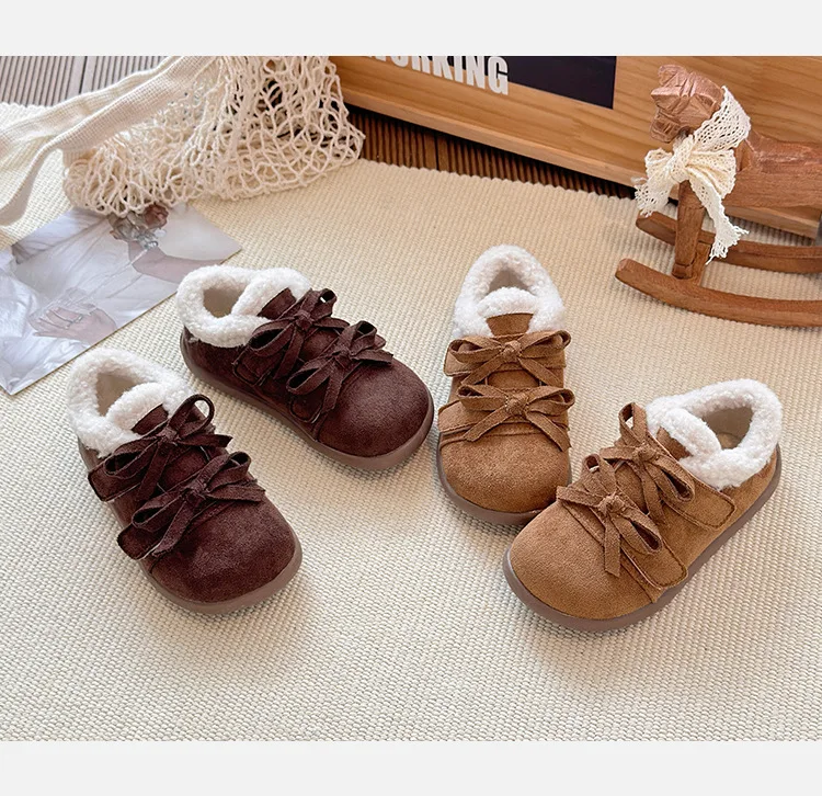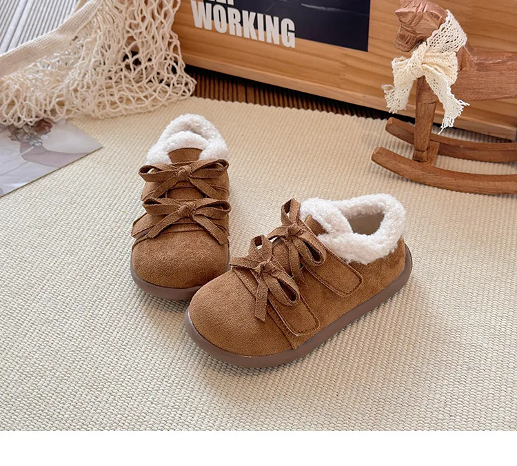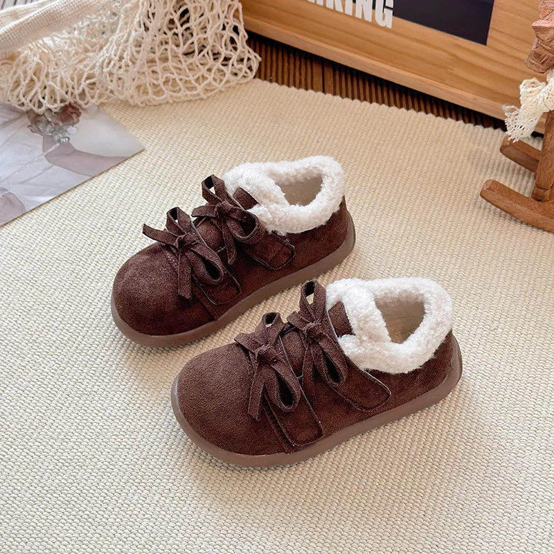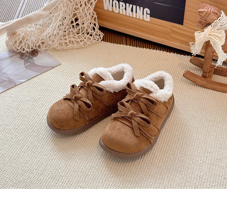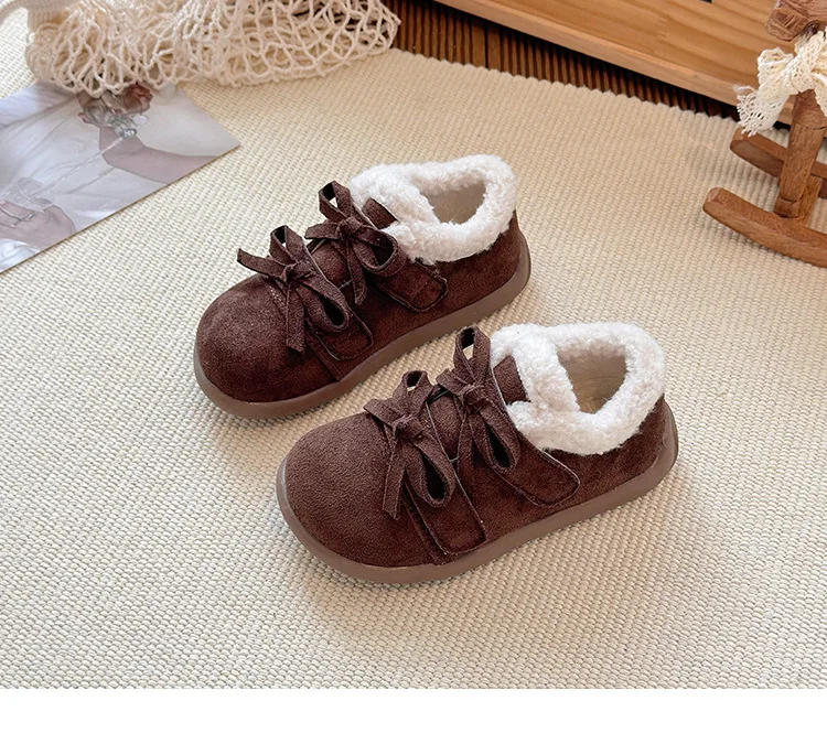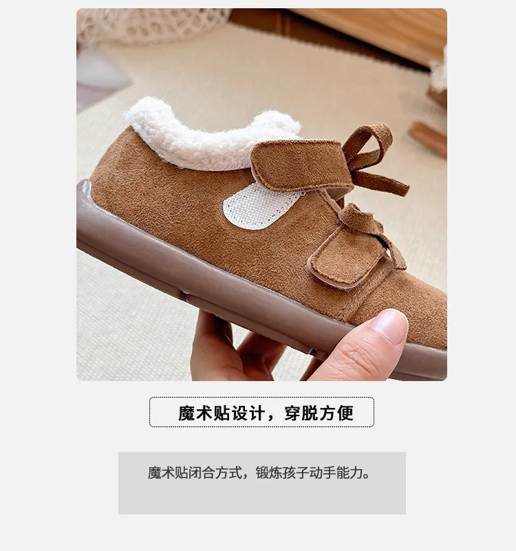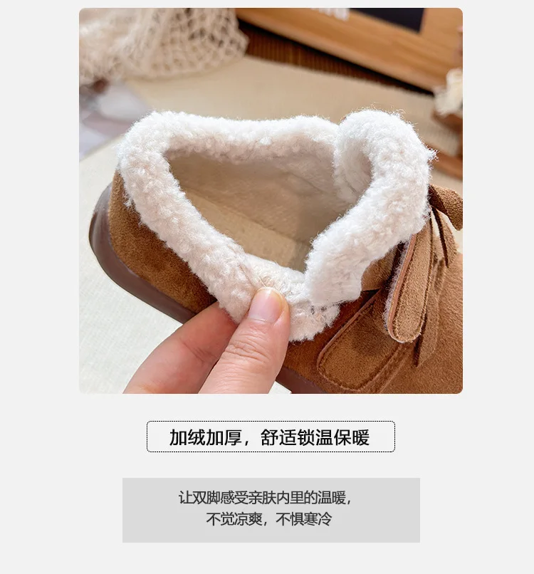 Zapato de invierno para niños 2025, edición coreana, nueva bota individual de fondo plano para niños, bota de felpa antideslizante Retro para niñas, botas de moda para niñas