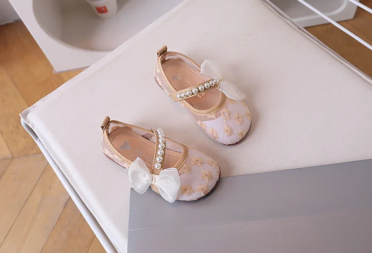 Comprar Zapato de malla para niños 2025, novedad de verano, zapatos para niñas, zapatos con lazo a la moda para niñas, zapatos de princesa de flores, zapatos antideslizantes de suela blanda para niños