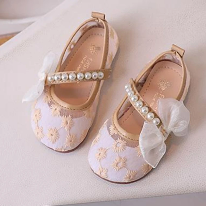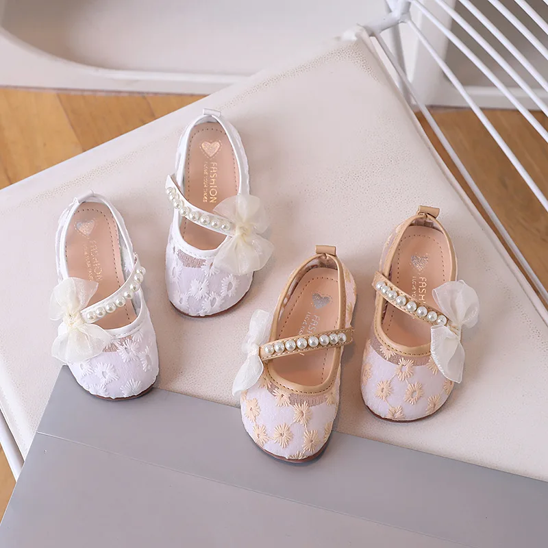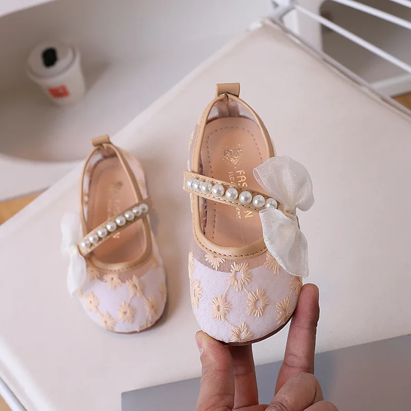 Comprar Zapato de malla para niños 2025, novedad de verano, zapatos para niñas, zapatos con lazo a la moda para niñas, zapatos de princesa de flores, zapatos antideslizantes de suela blanda para niños