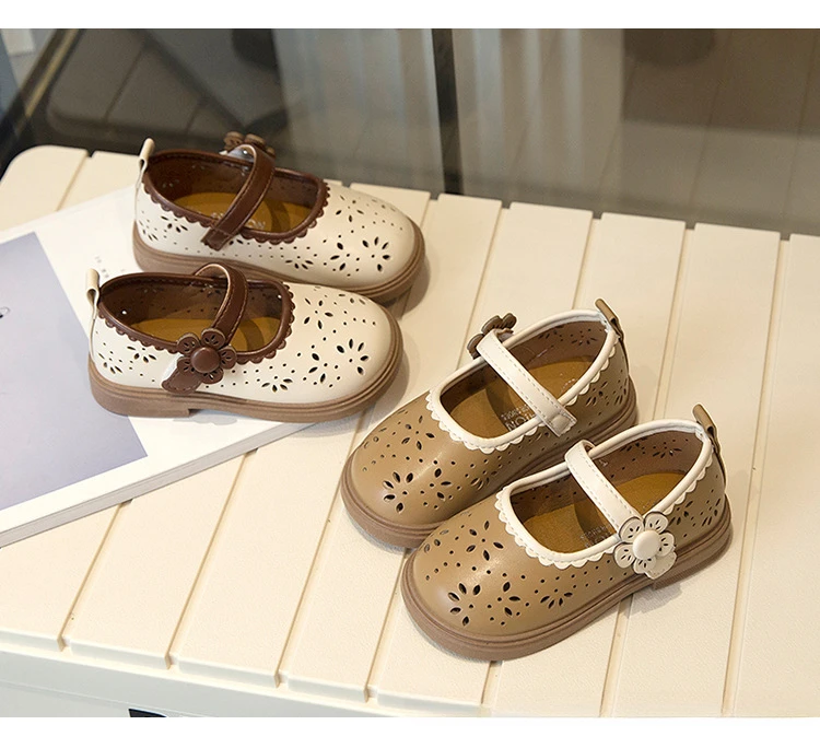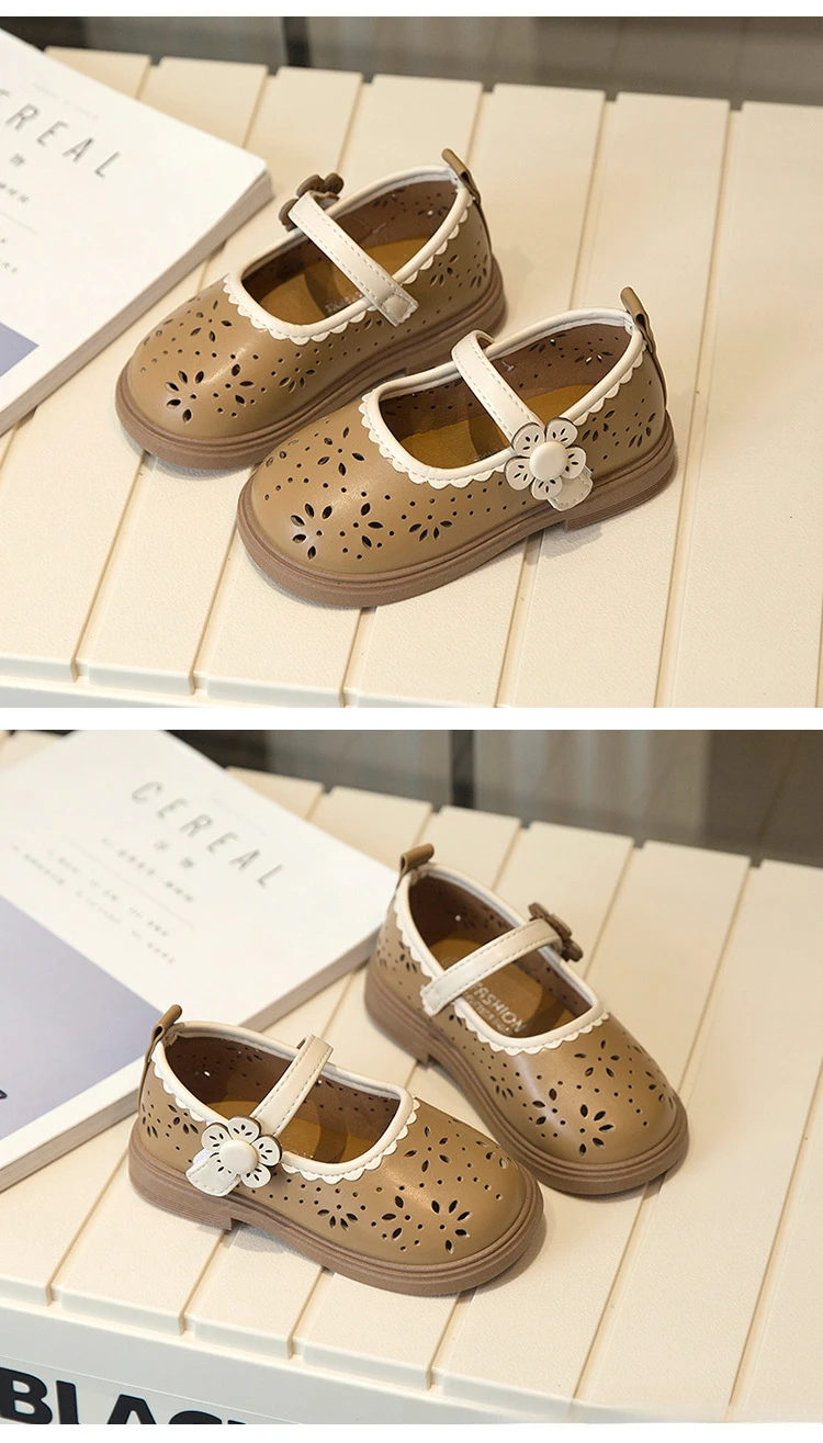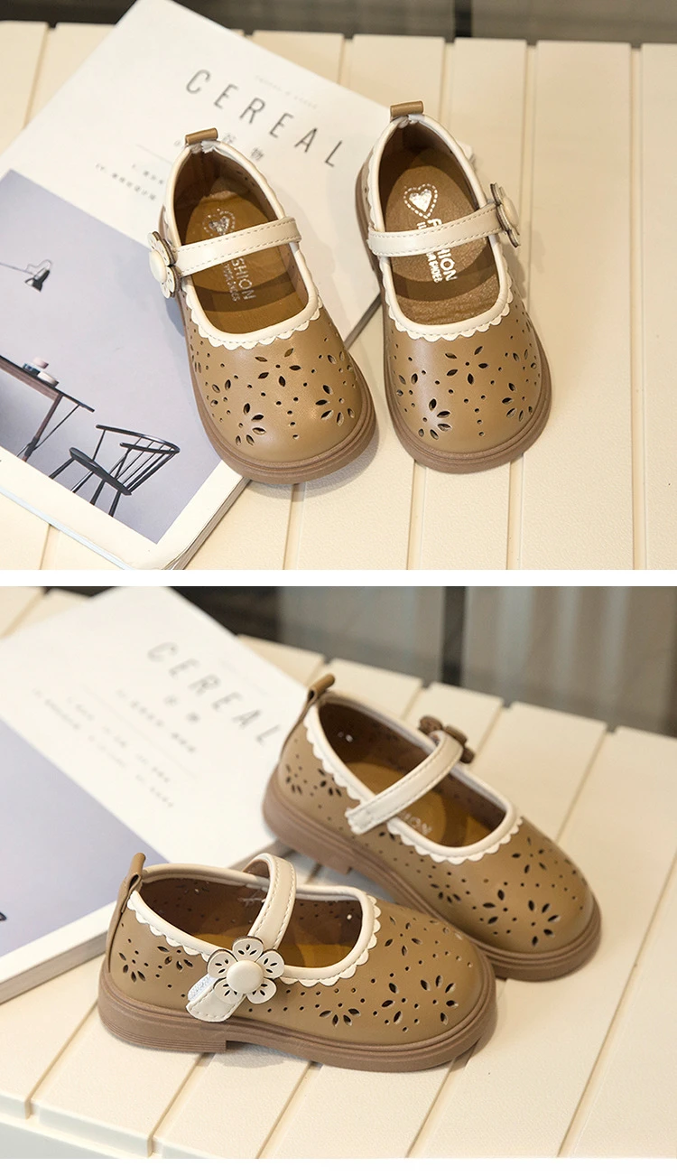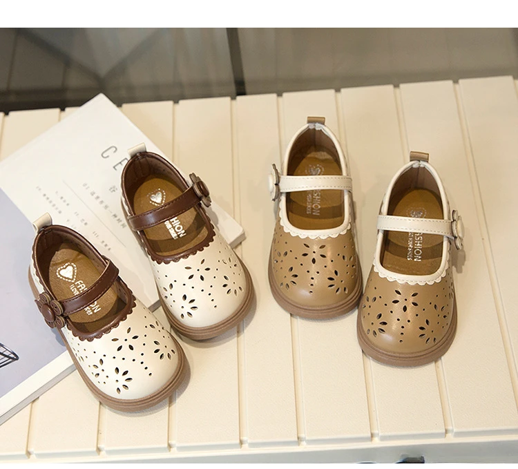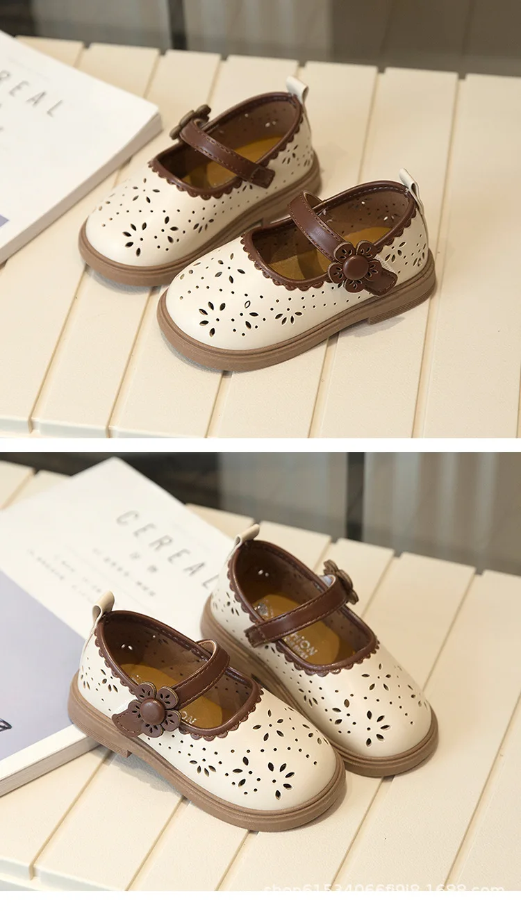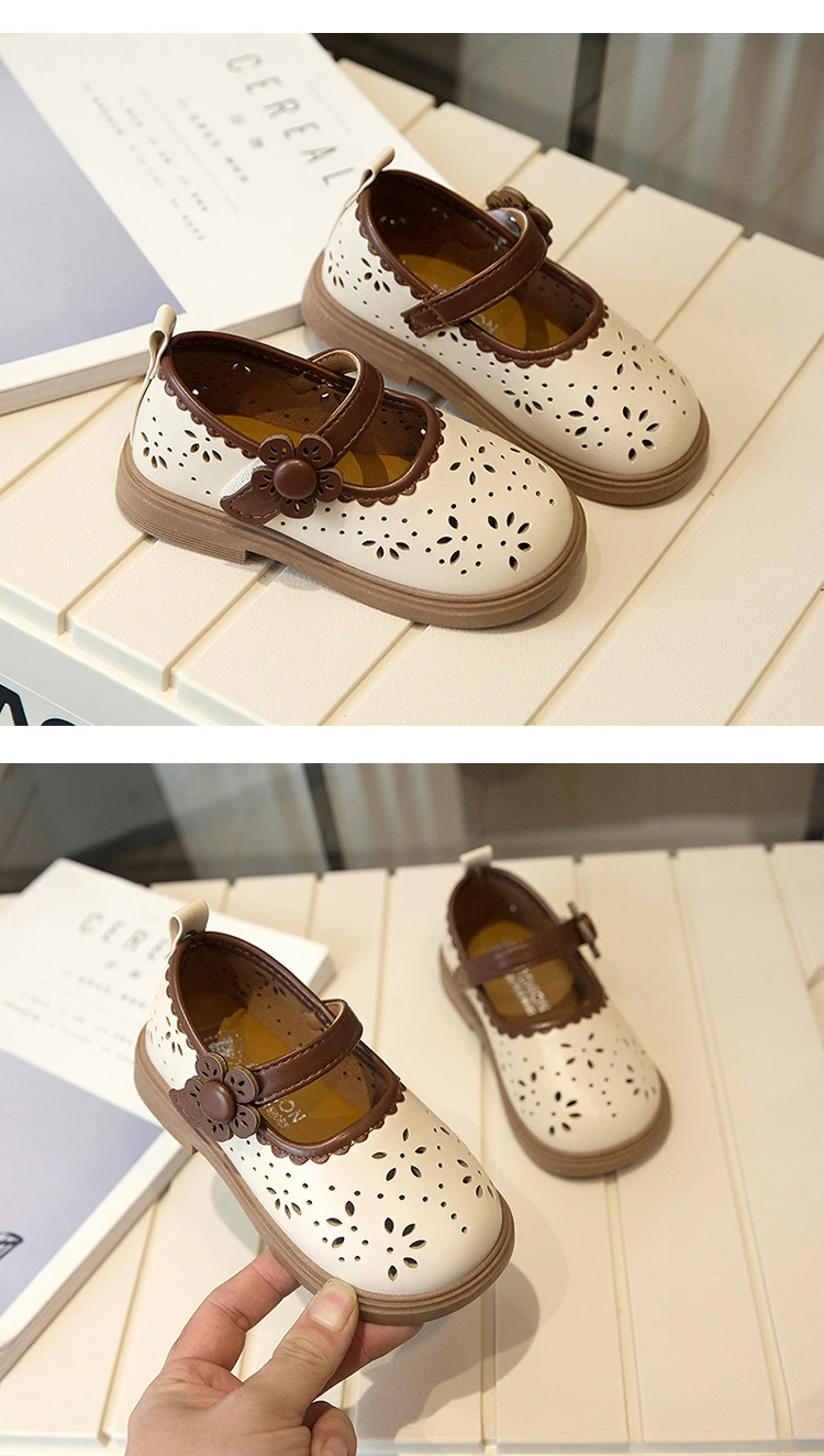 Zapato de princesa para niños, zapatos de cuero transpirables con agujeros para primavera para niñas, cómodos zapatos de bebé poco profundos Mary Jane de suela suave