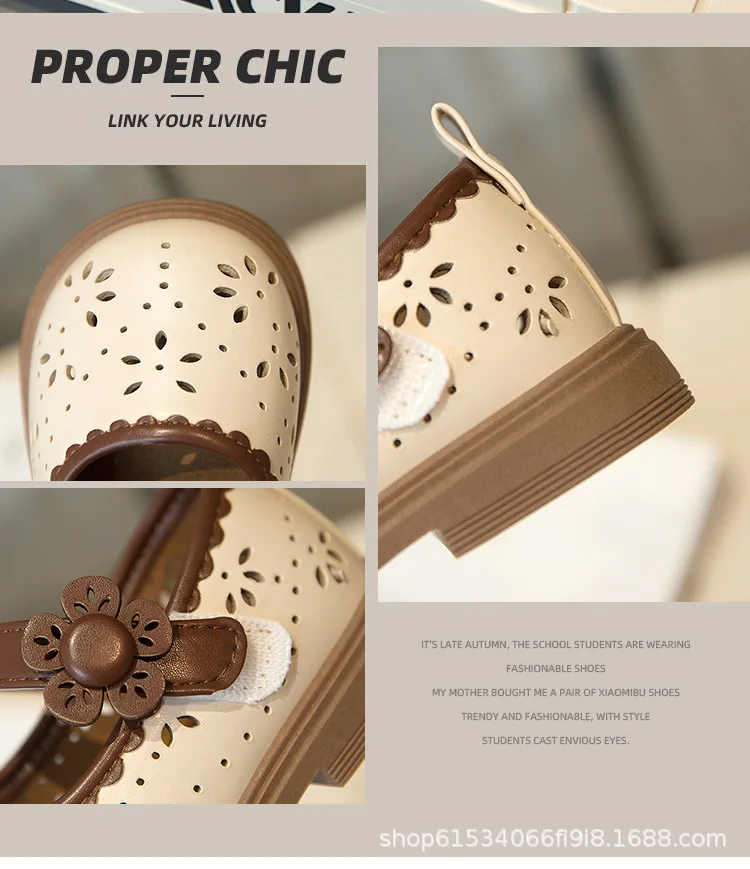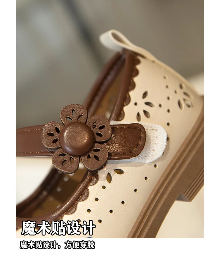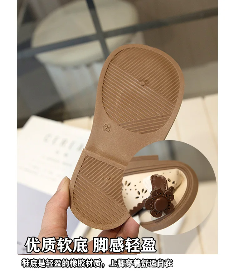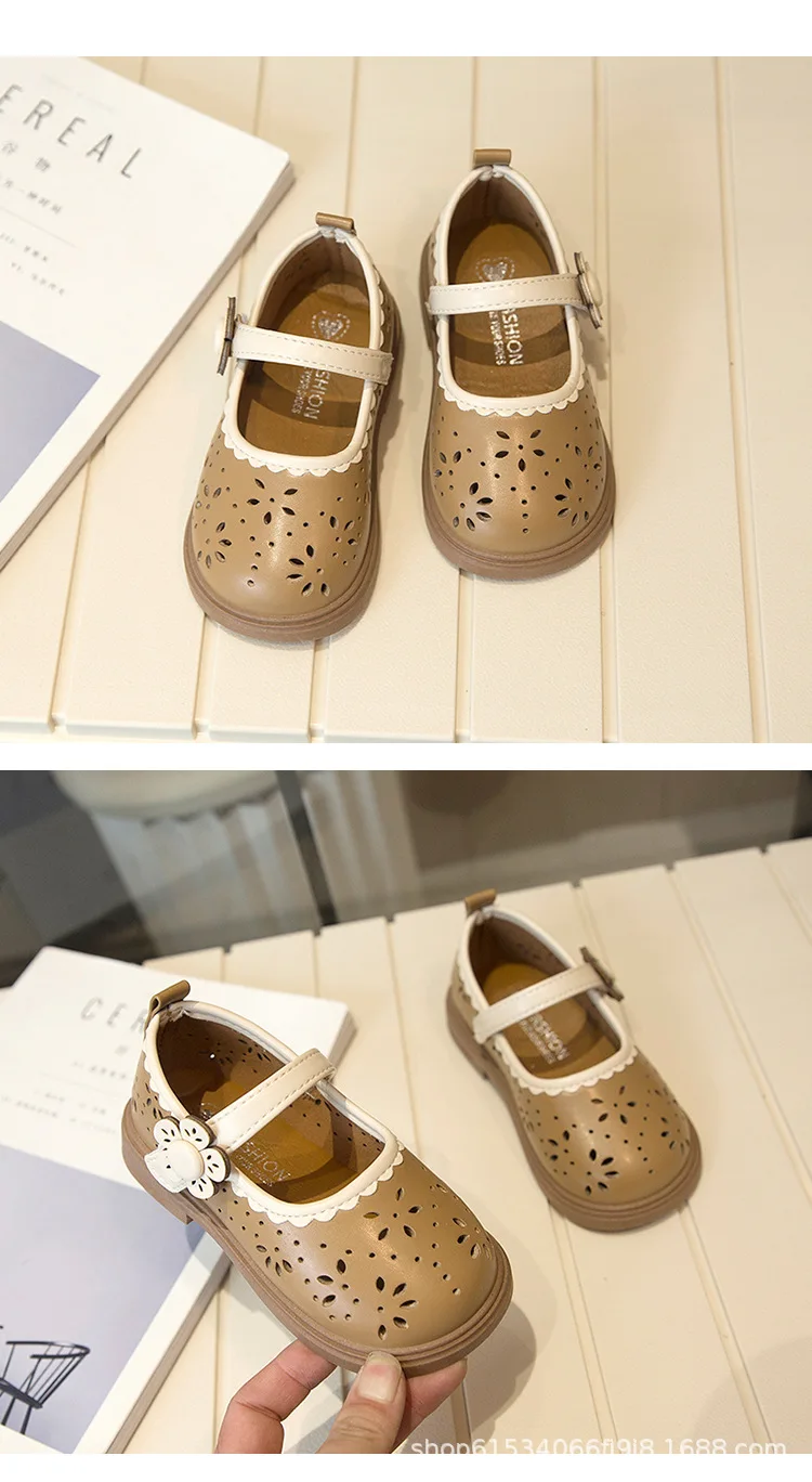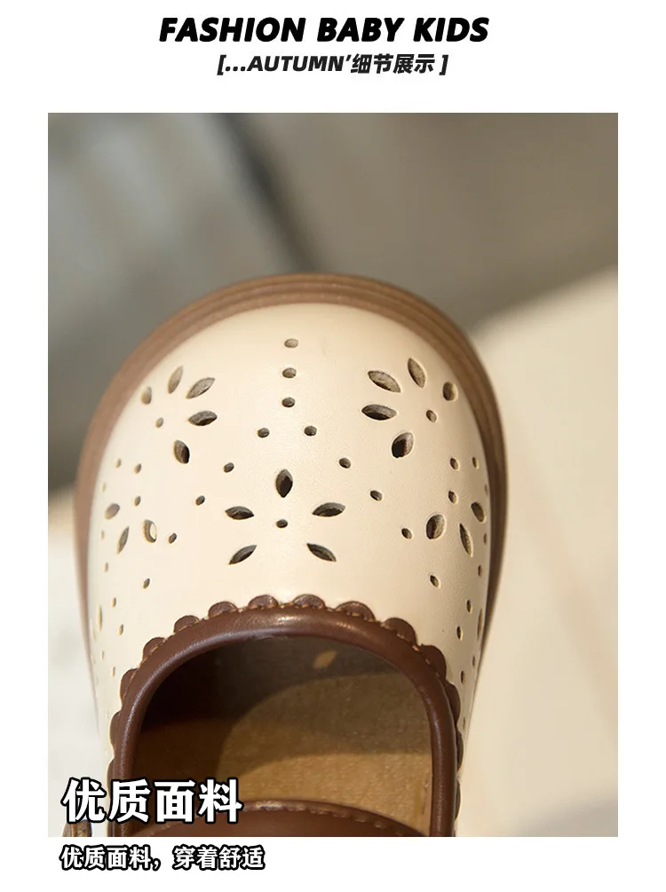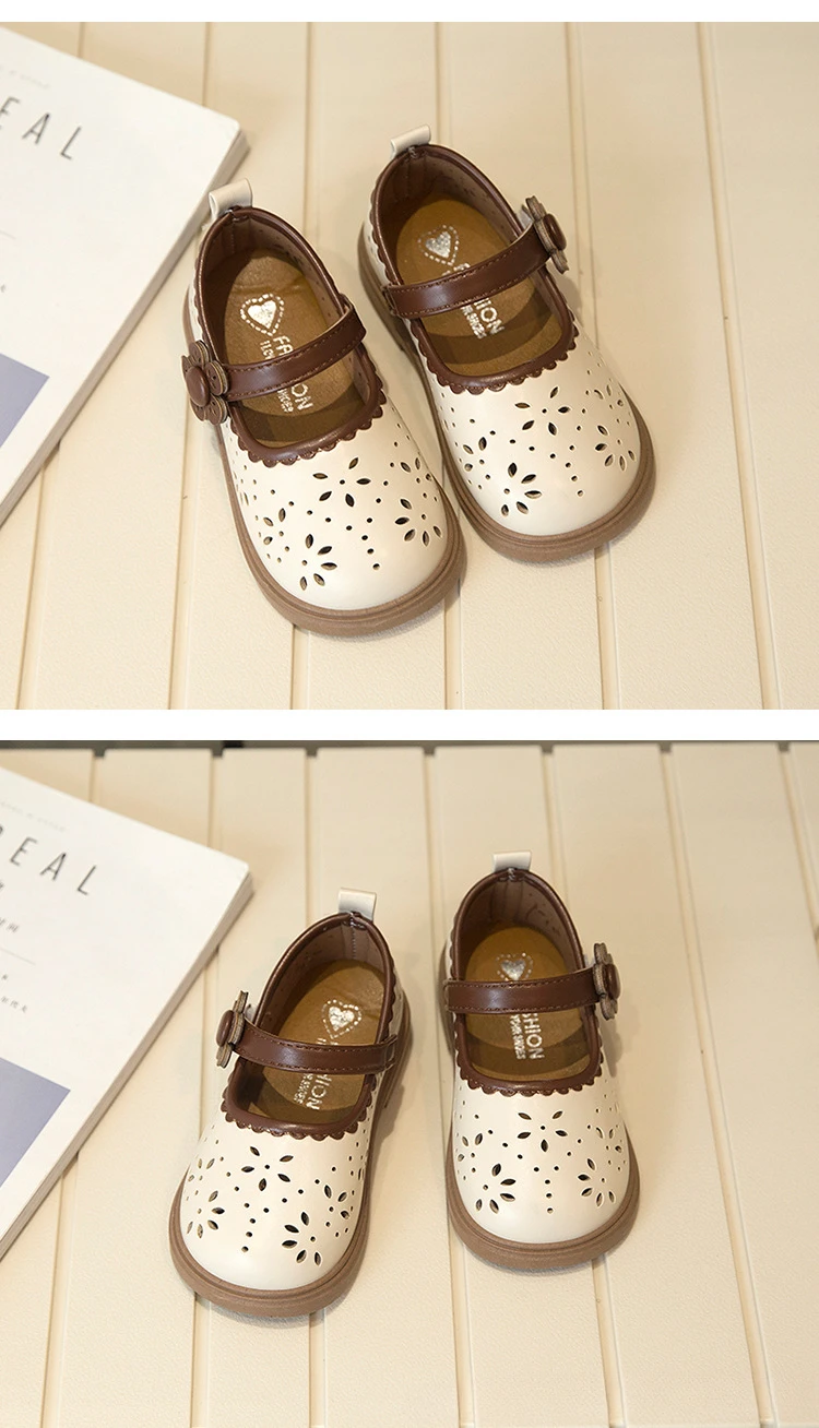 Zapato de princesa para niños, zapatos de cuero transpirables con agujeros para primavera para niñas, cómodos zapatos de bebé poco profundos Mary Jane de suela suave