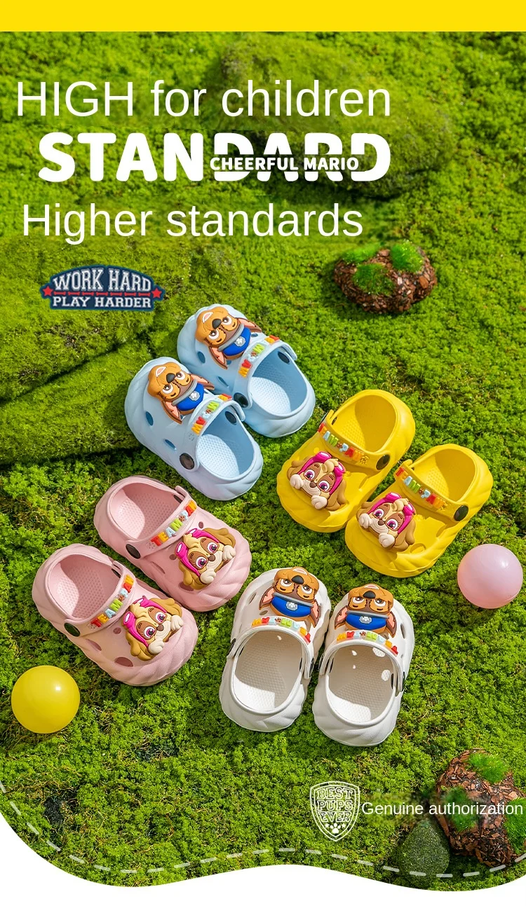 Comprar Zapatos con agujeros de perro de dibujos animados para niños, sandalias de interior y exterior para bebés, zapatillas antideslizantes resistentes al desgaste para el hogar para niños y niñas