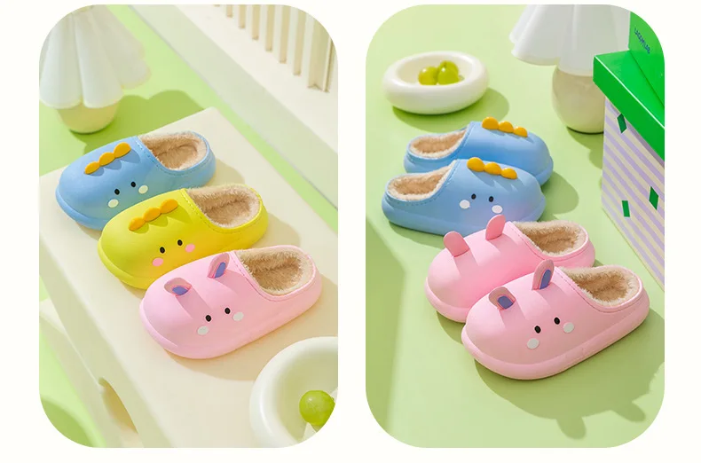 Comprar Zapatos de algodón para el hogar para niños y niñas, sandalias de dibujos animados bonitos, zapatillas cálidas de felpa para niños, chanclas antideslizantes impermeables de PVC