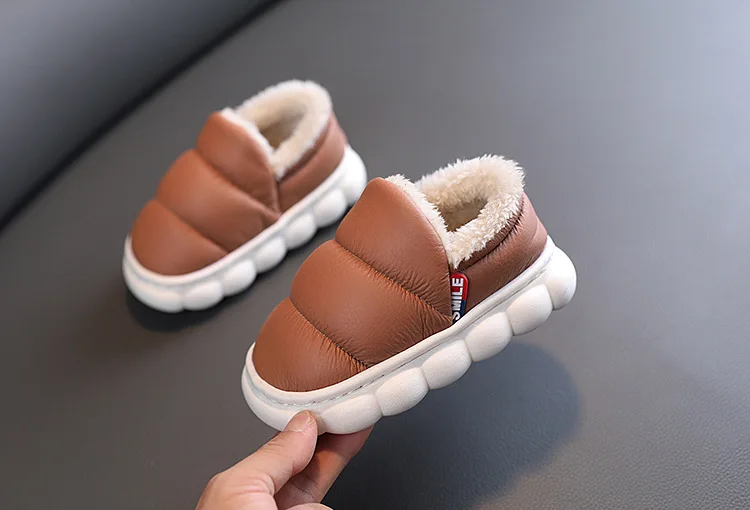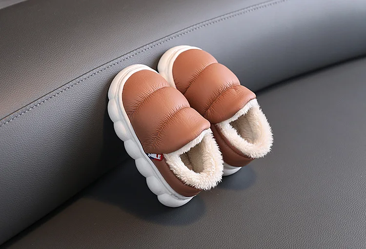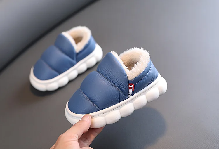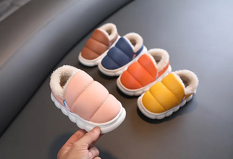 Zapatos de algodón de suela suave EVA para niños y niñas, Zapatillas de casa cálidas de felpa para interiores, zapatos impermeables antideslizantes para niños, Invierno