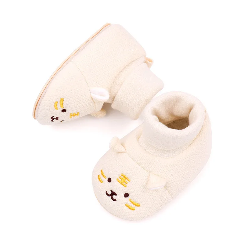 Zapatos de bebé con dibujos animados, zapatos de calcetín suaves antideslizantes para bebés, zapatos cálidos de algodón para niños pequeños, botas