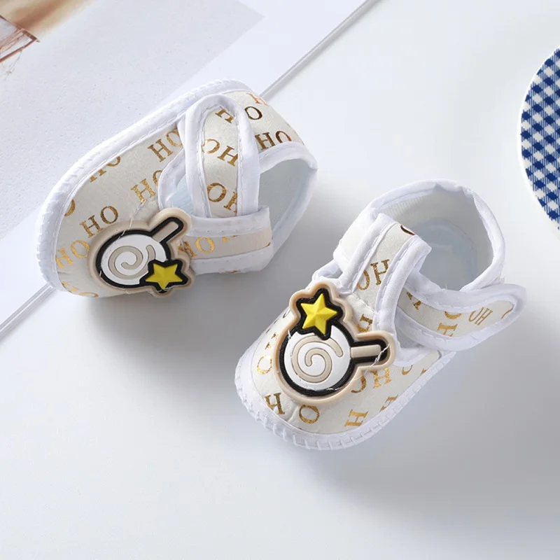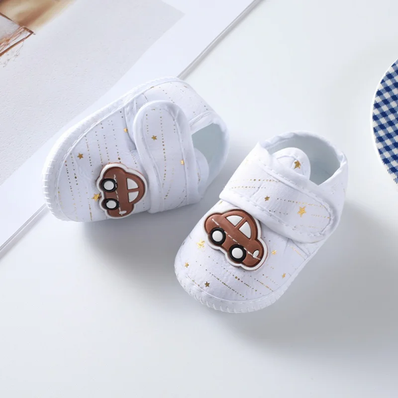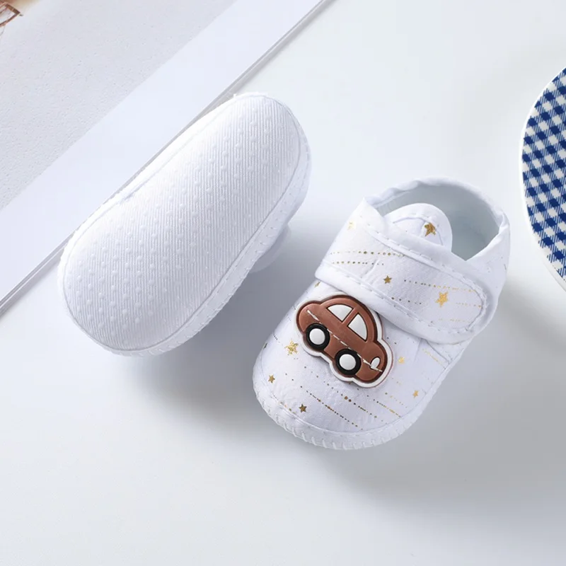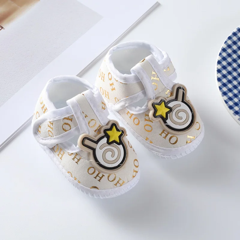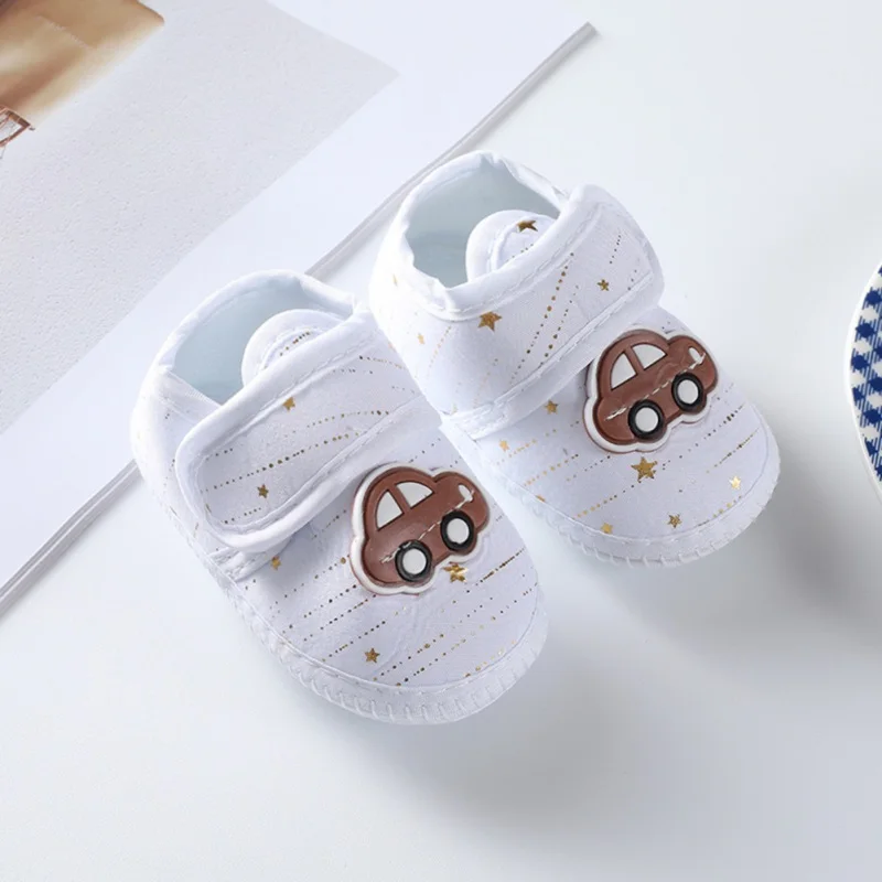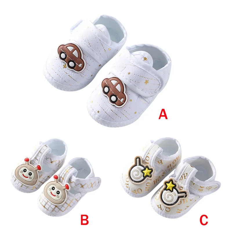 Zapatos antideslizantes de suela suave con patrón de dibujos animados para bebé recién nacido, zapatos de algodón para primeros pasos