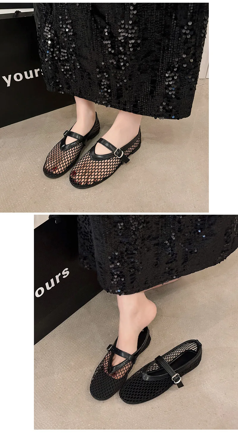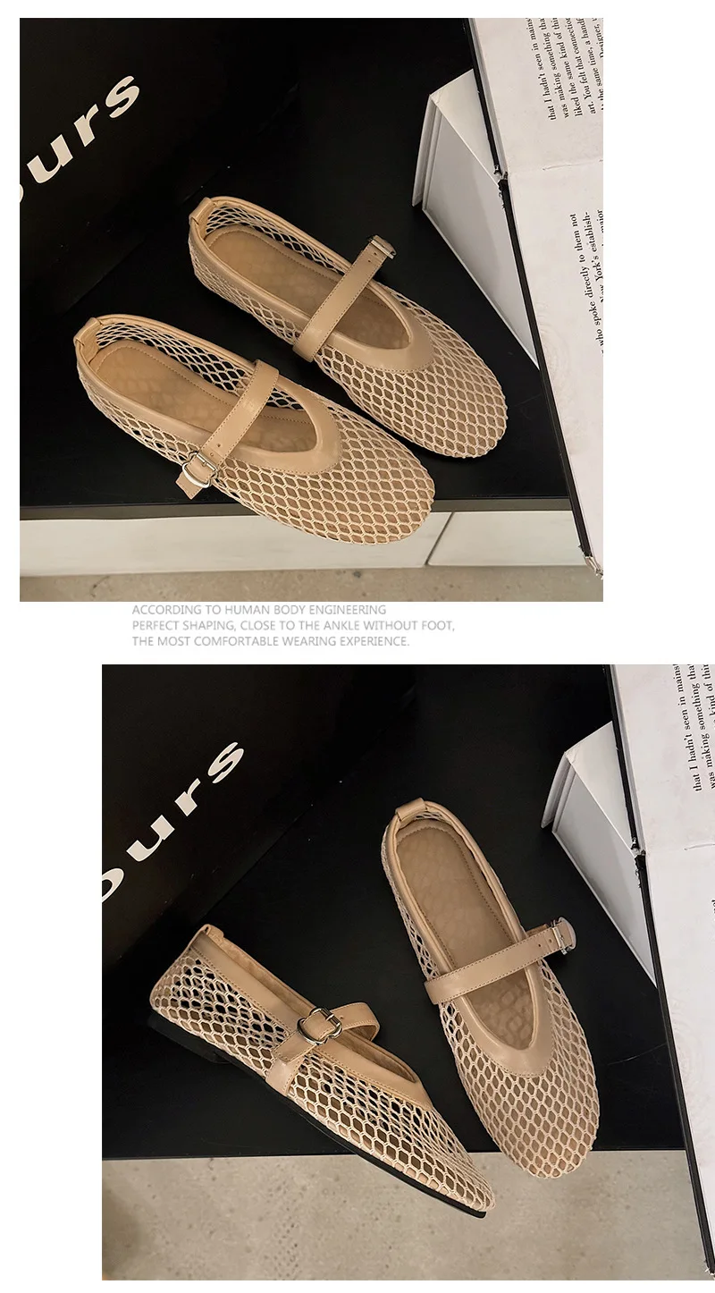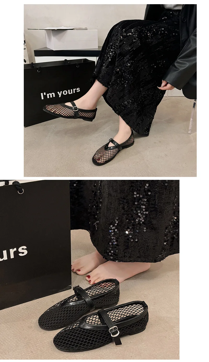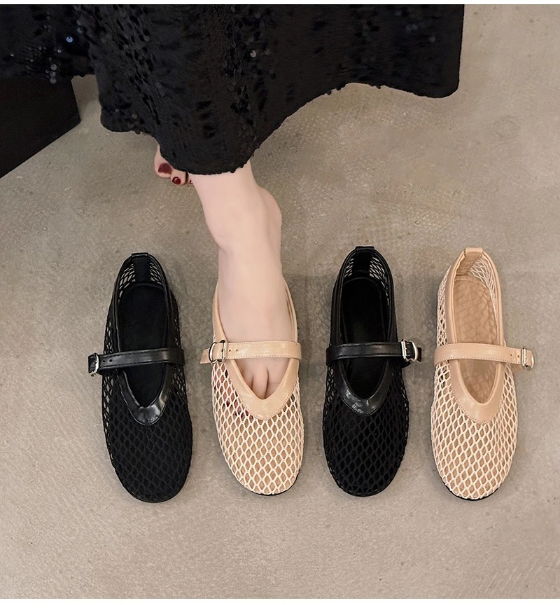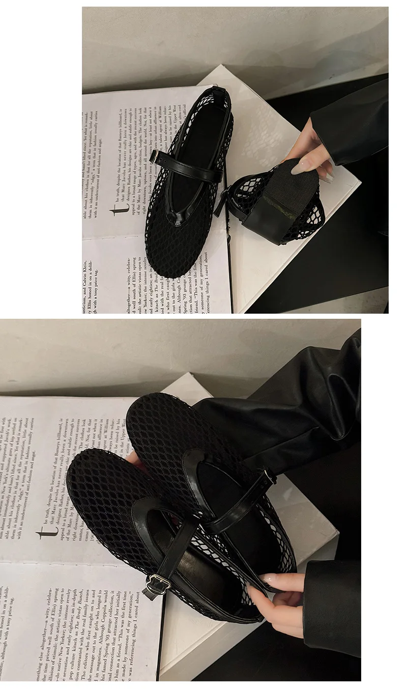 Comprar Zapatos de Ballet negros de malla transpirable para mujer, zapatos planos a la moda para primavera y verano, sandalias de calle para caminar a diario con punta redonda y suela suave