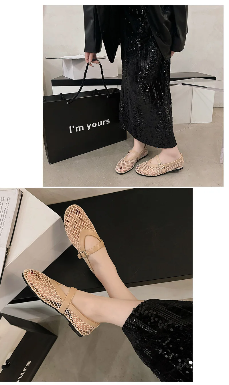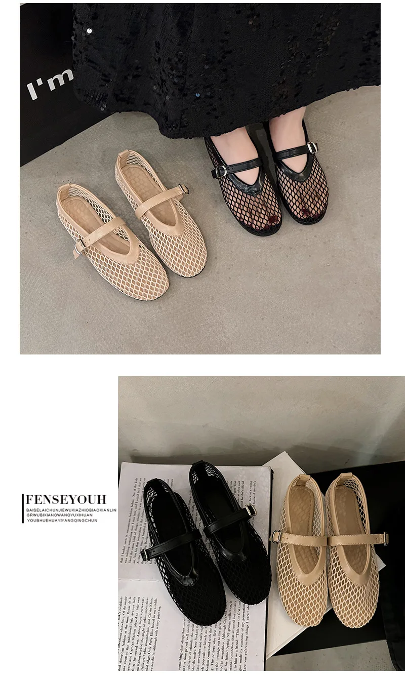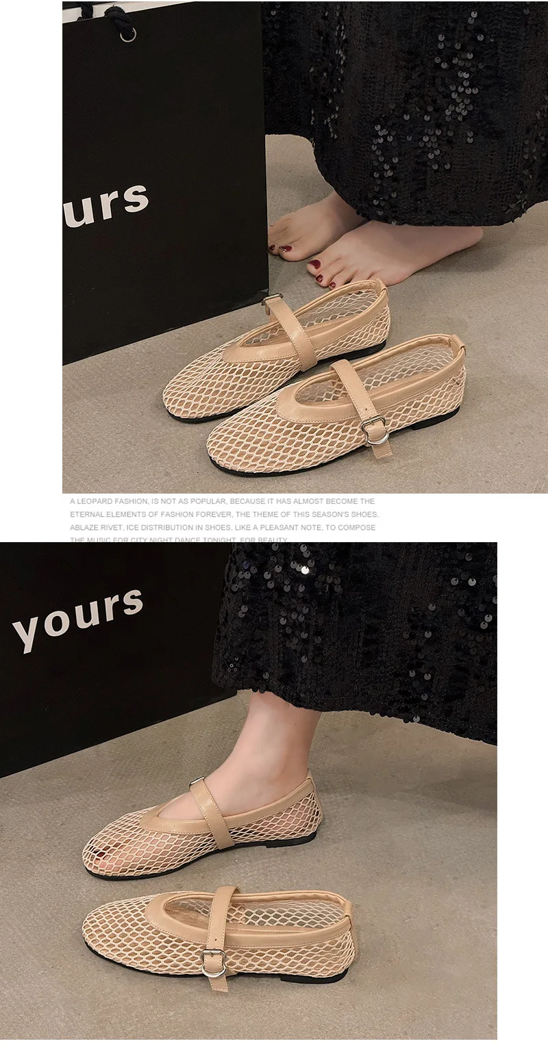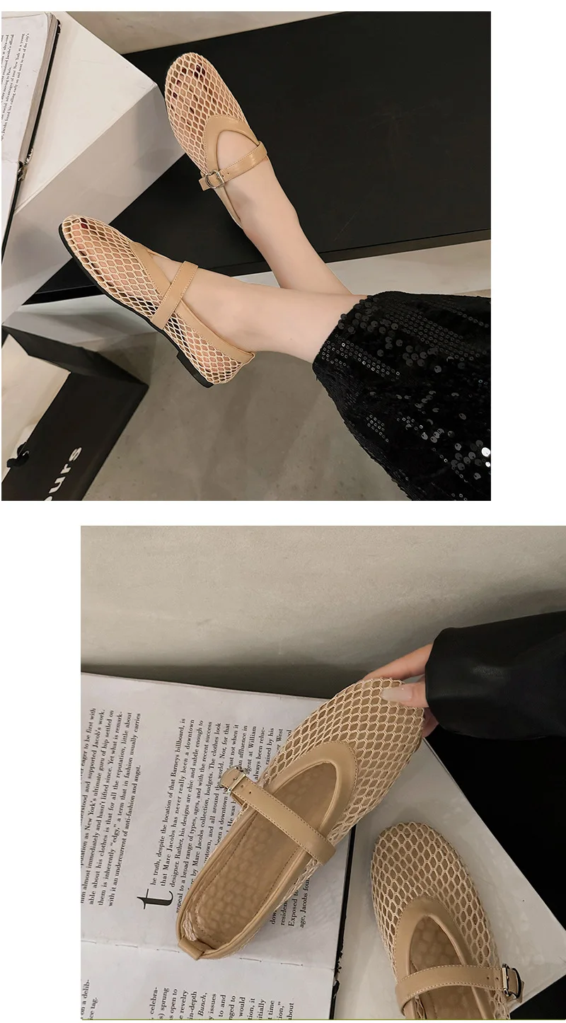 Comprar Zapatos de Ballet negros de malla transpirable para mujer, zapatos planos a la moda para primavera y verano, sandalias de calle para caminar a diario con punta redonda y suela suave