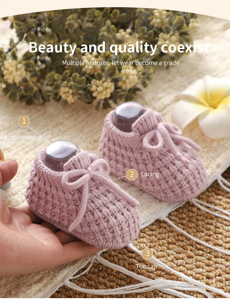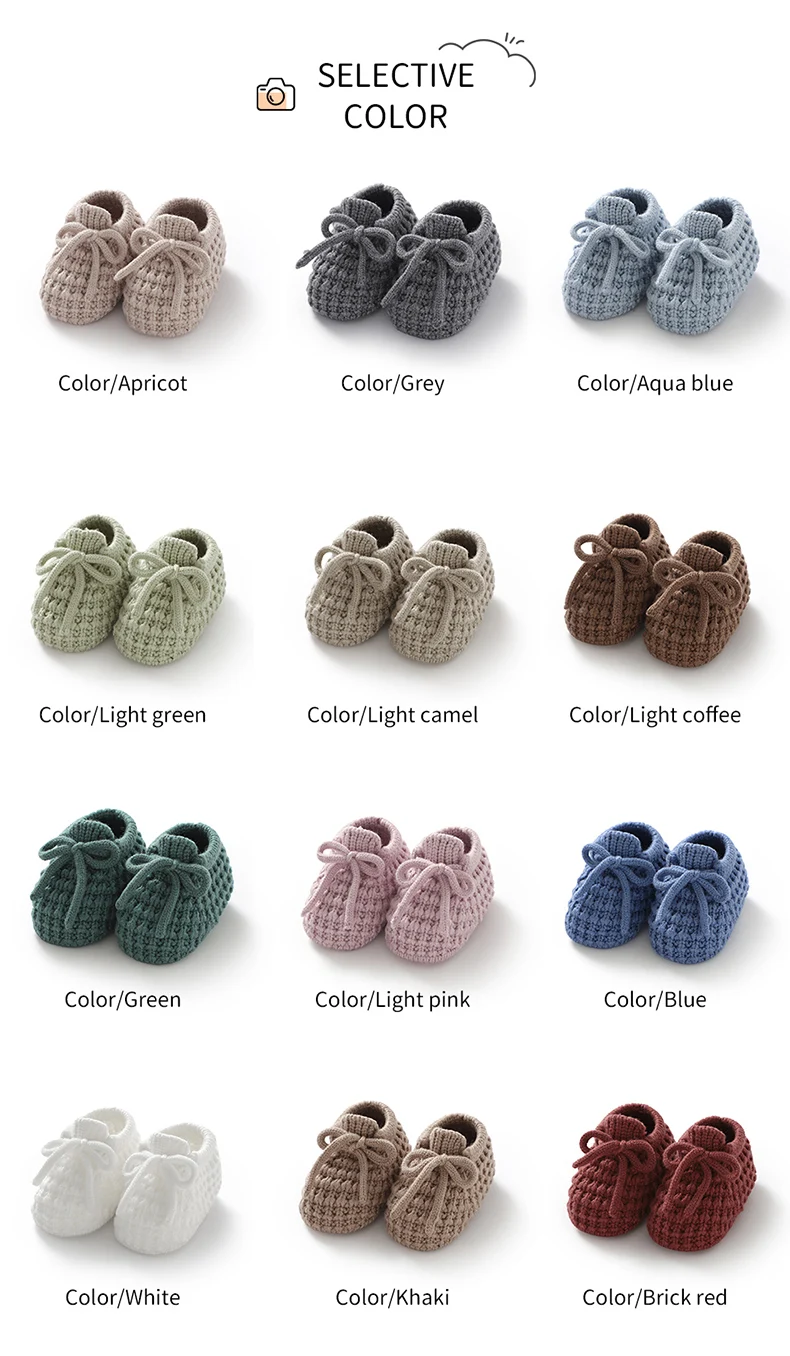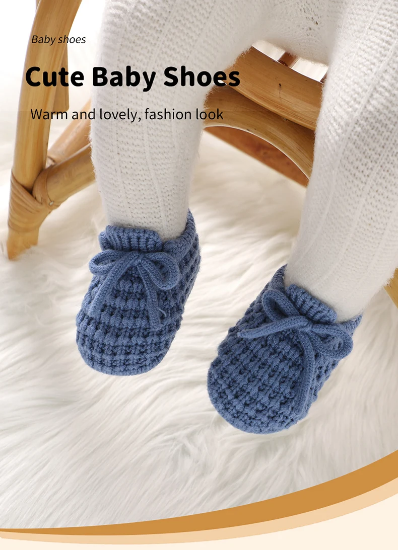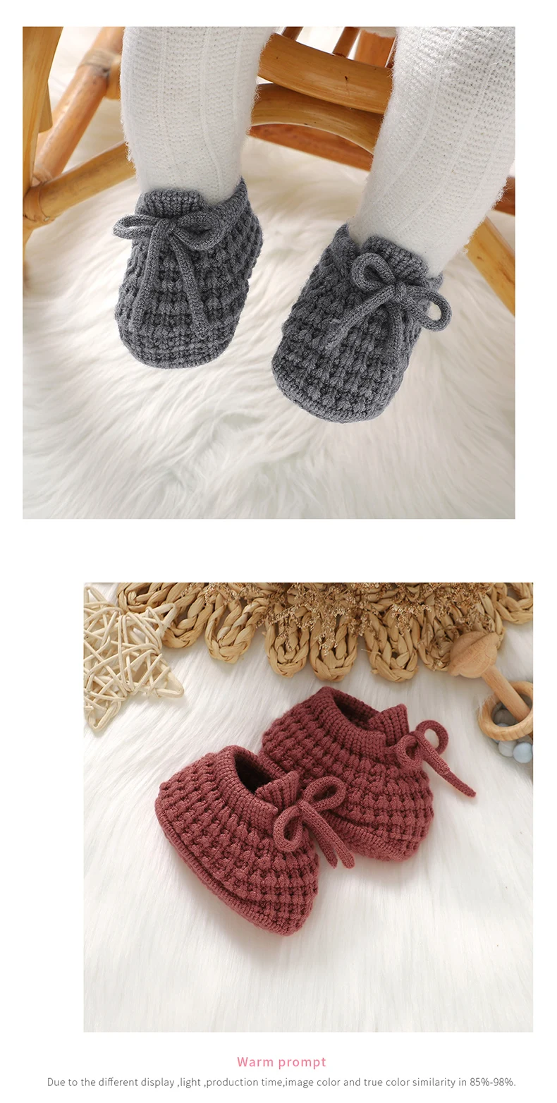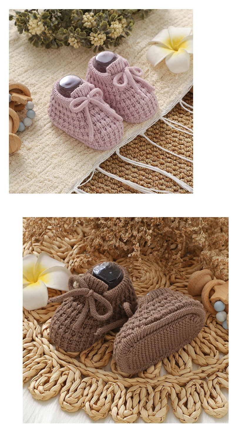 Zapatos de bebé recién nacido, calzado de cama tejido para niños y niñas, botas de moda sólidas y poco profundas para niños pequeños, accesorios de ropa de 0 a 18M