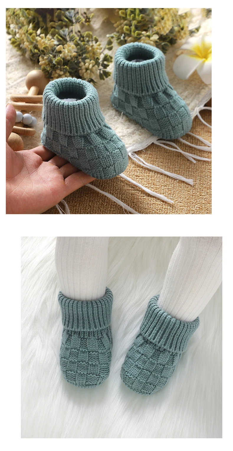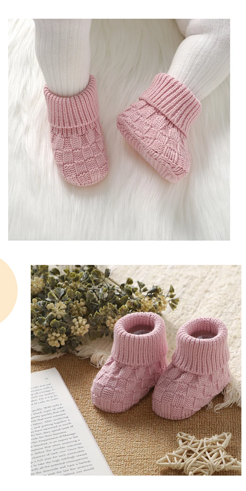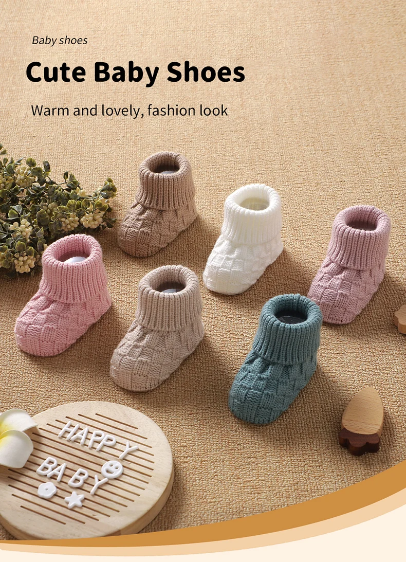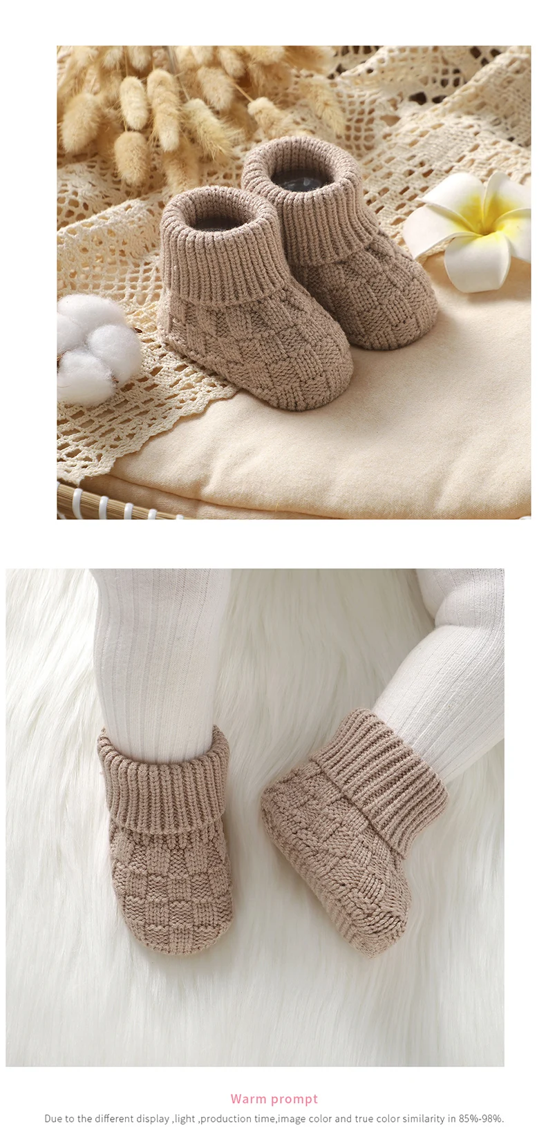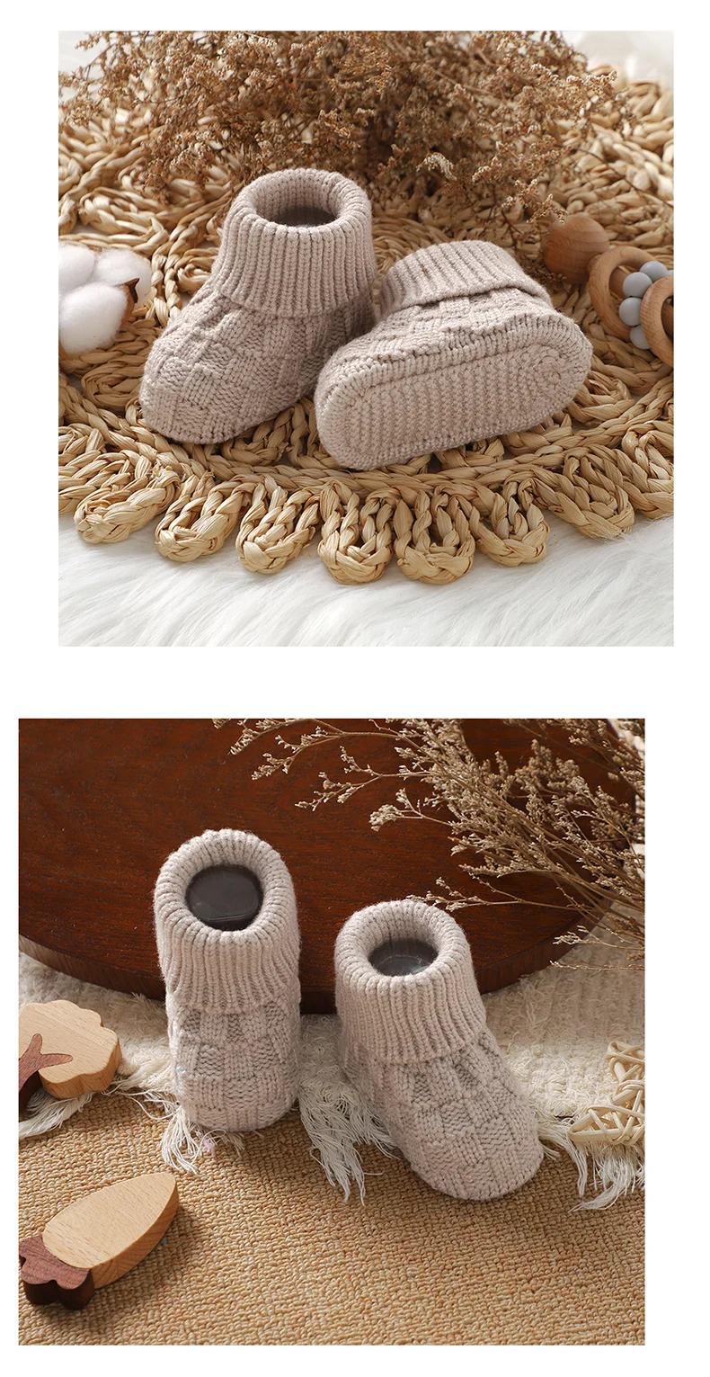Zapatos de bebé recién nacido, calzado tejido para niños de 0 a 18M, accesorios de ropa, botas cálidas y bonitas para niño y niña, moda sólida con vuelta hacia abajo