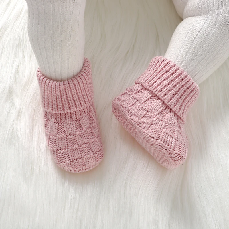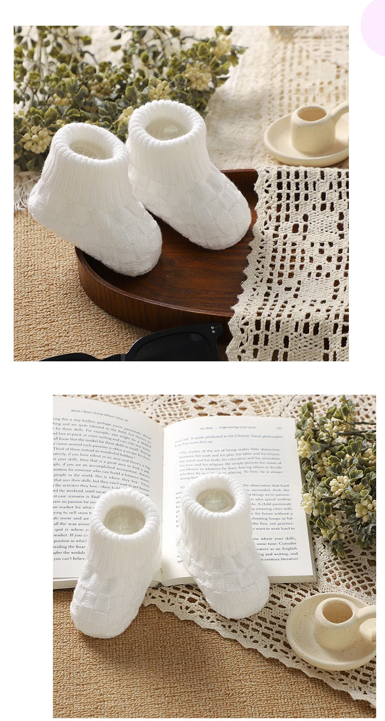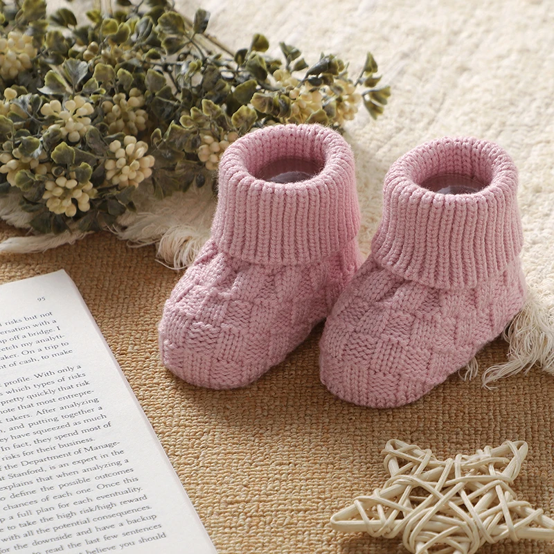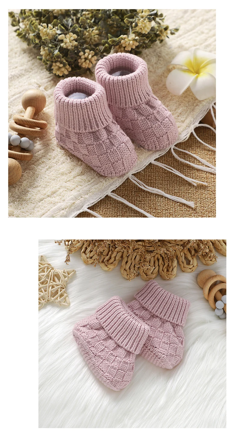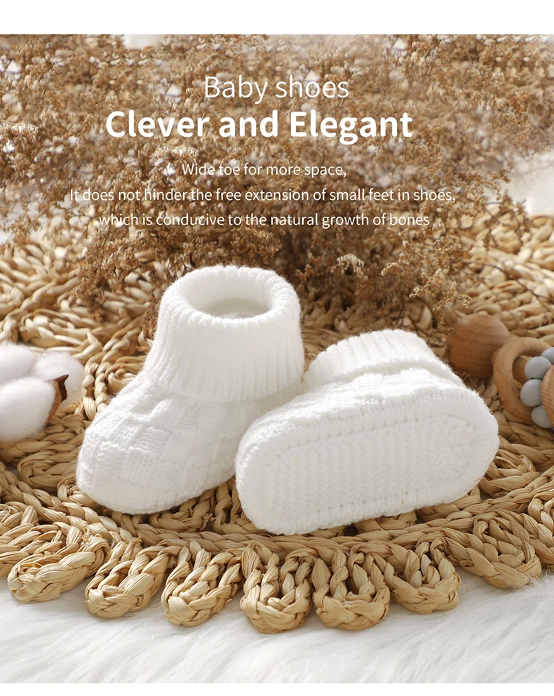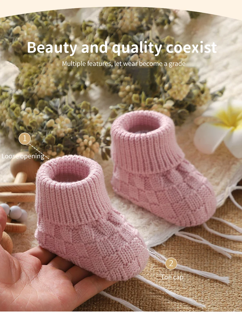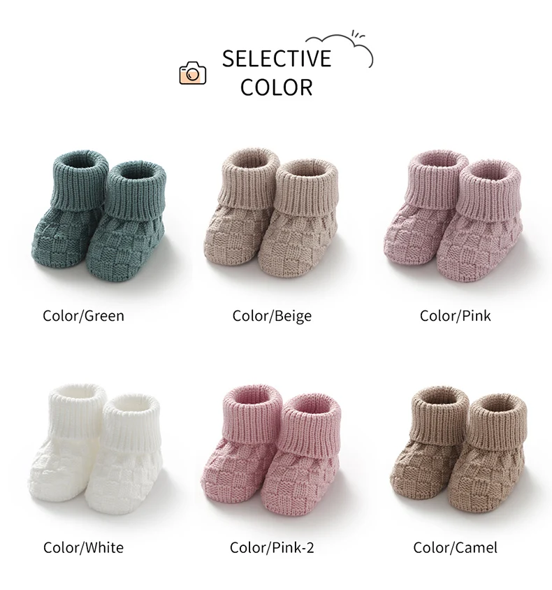 Zapatos de bebé recién nacido, calzado tejido para niños de 0 a 18M, accesorios de ropa, botas cálidas y bonitas para niño y niña, moda sólida con vuelta hacia abajo