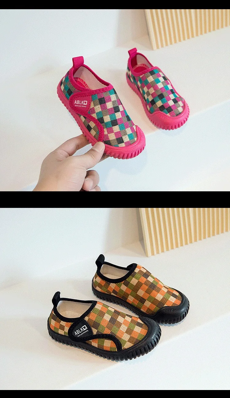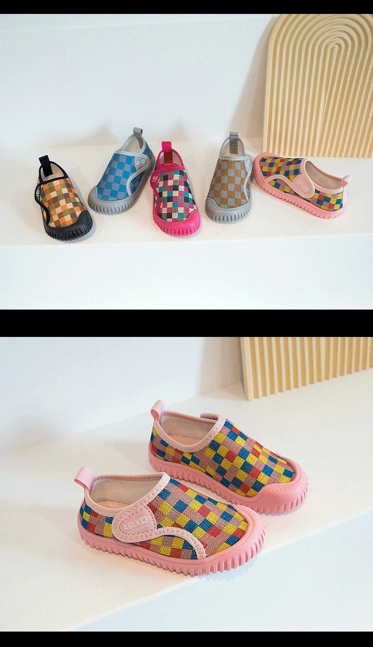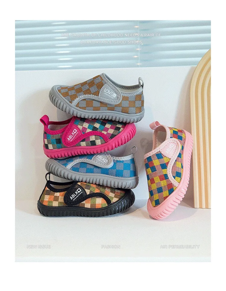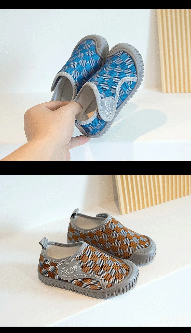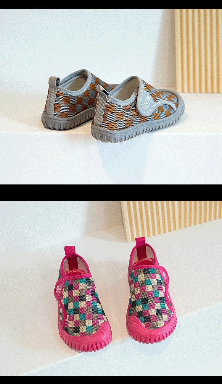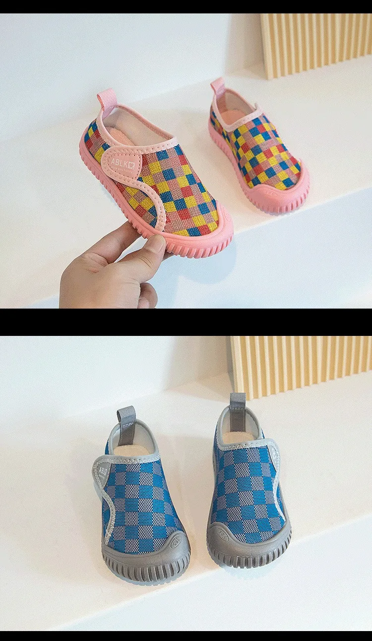 Zapatos para bebés y niños, zapatos informales a cuadros para niños, zapatillas cómodas de malla para niños, zapatos antideslizantes de suela blanda para niños pequeños