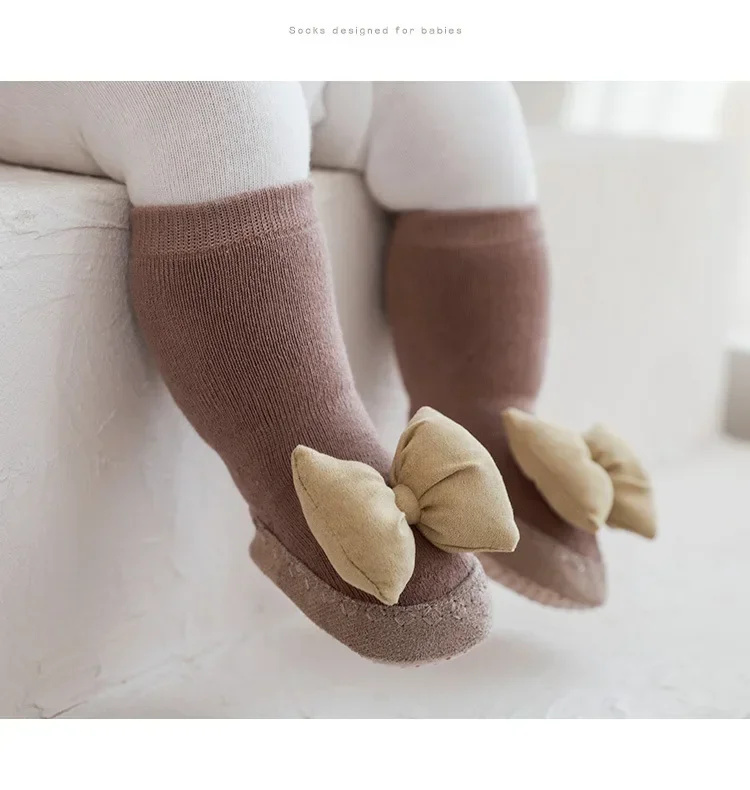 Zapatos de calcetín antideslizantes para recién nacido, zapatos de calcetín de pantorrilla con lazo, moda coreana, primeros pasos de algodón, Otoño e Invierno