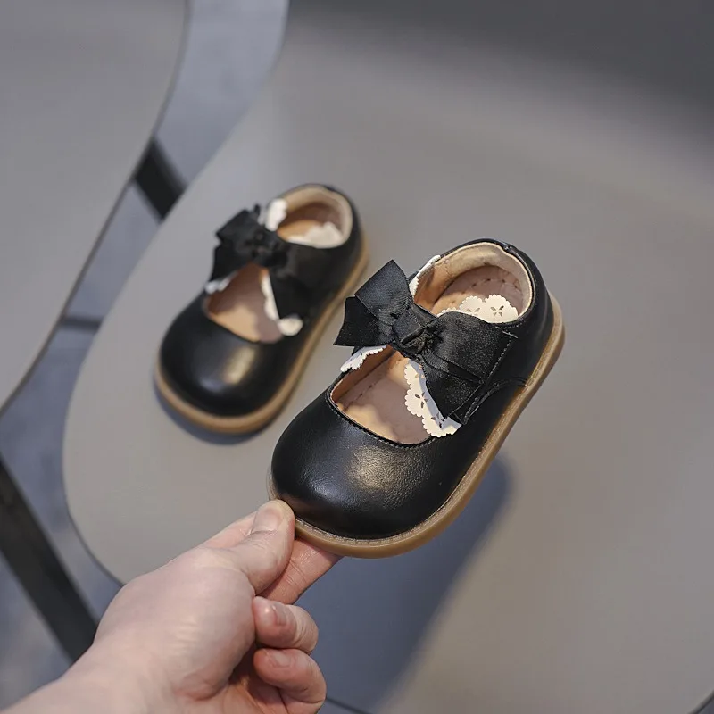Comprar Zapatos de cuero de estilo británico para niñas, zapatos de princesa de fiesta con lazo, suela suave, antideslizantes, ligeros