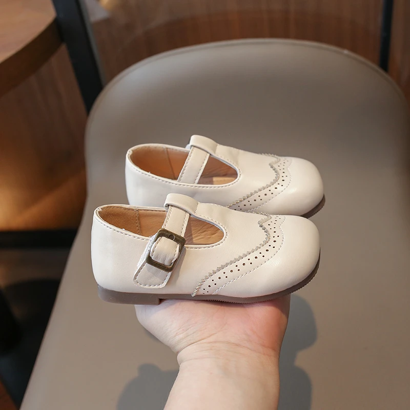 Comprar Zapatos de cuero informales para niñas pequeñas, zapatos de princesa de estilo Retro, antideslizantes de fondo suave, primavera y otoño