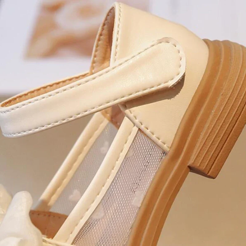Zapatos de cuero para niñas, calzado de princesa transpirable, malla con lazo, fondo suave, verano y otoño