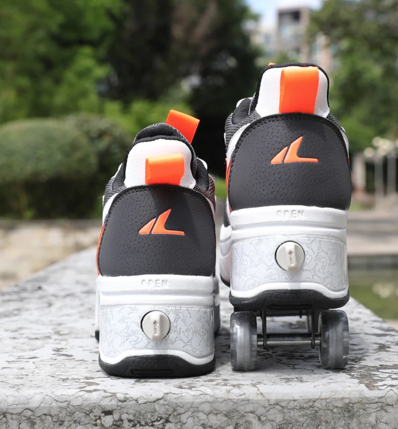 Zapatos de deformación de cuero PU para adultos, niños y niños, estudiantes, patines de ruedas, zapatos de voladura, zapatos de skate para mujer, patinaje azul