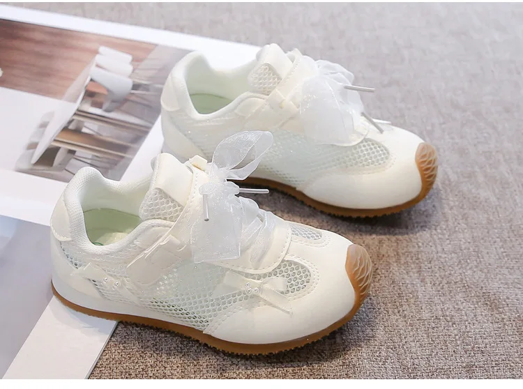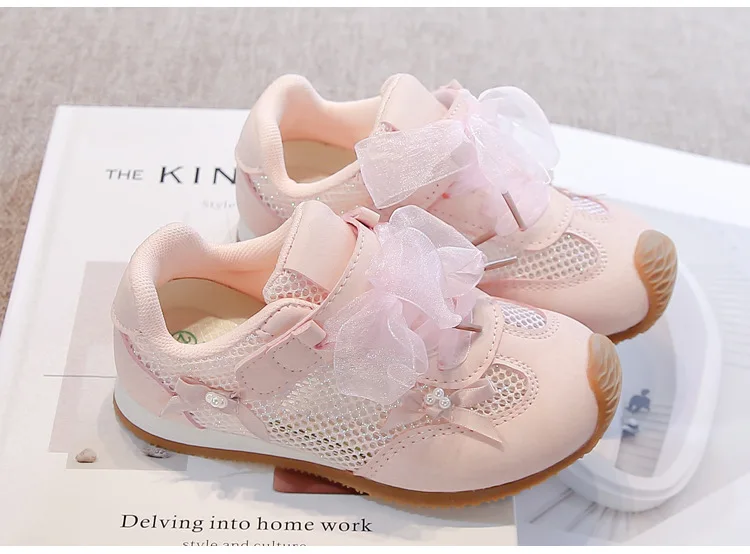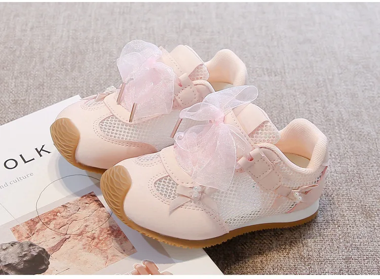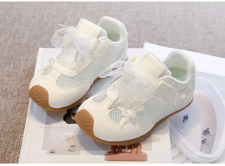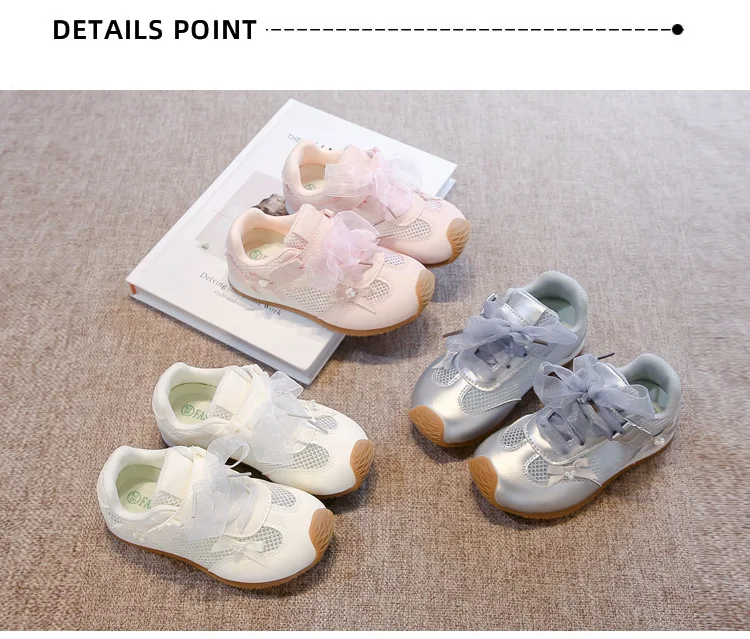 Zapatos informales para niñas 2025, primavera otoño, nueva moda, estilo coreano, fondo suave, antideslizantes, zapatos de bebé de encaje de princesa