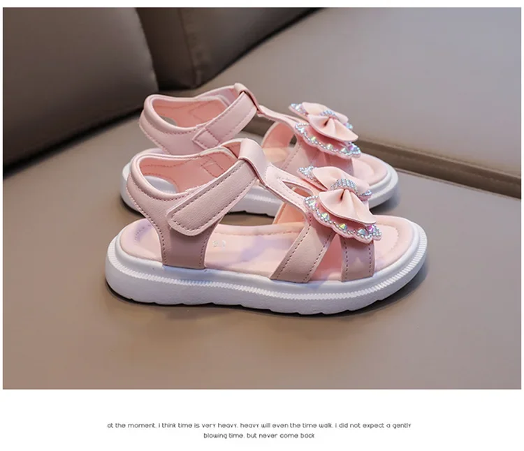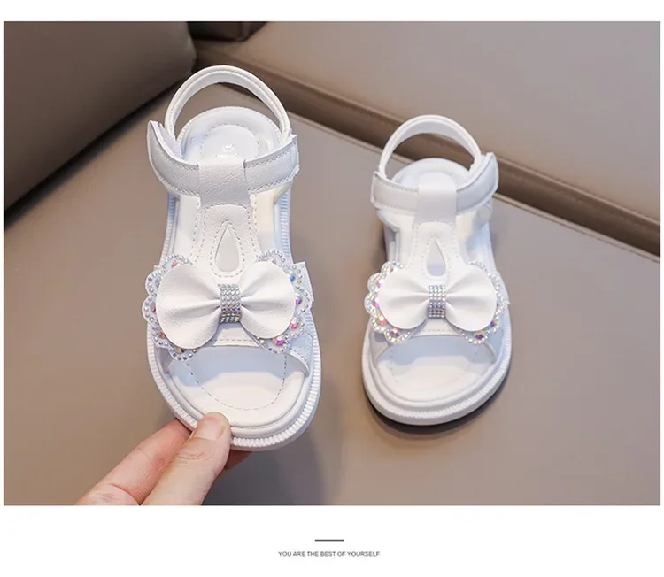 Zapatos informales de suela suave para niña, sandalias de princesa a la moda, zapatos de playa con diamantes de agua, sandalias con forma de lazo
