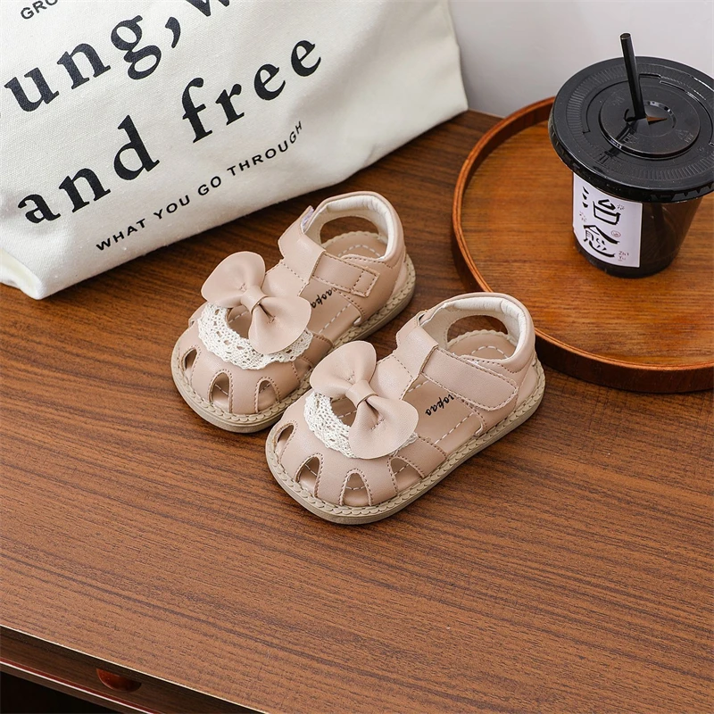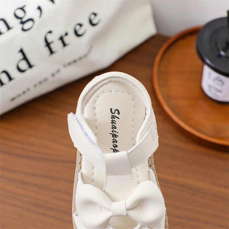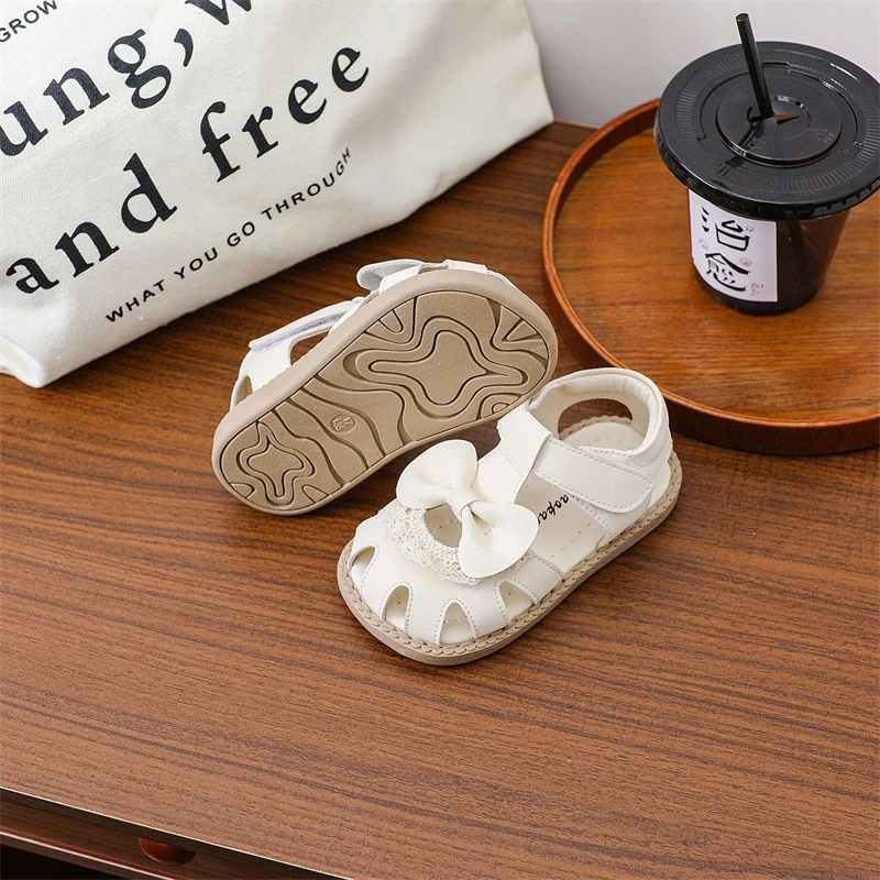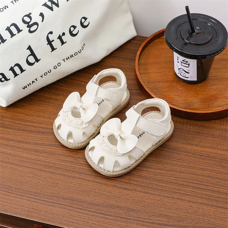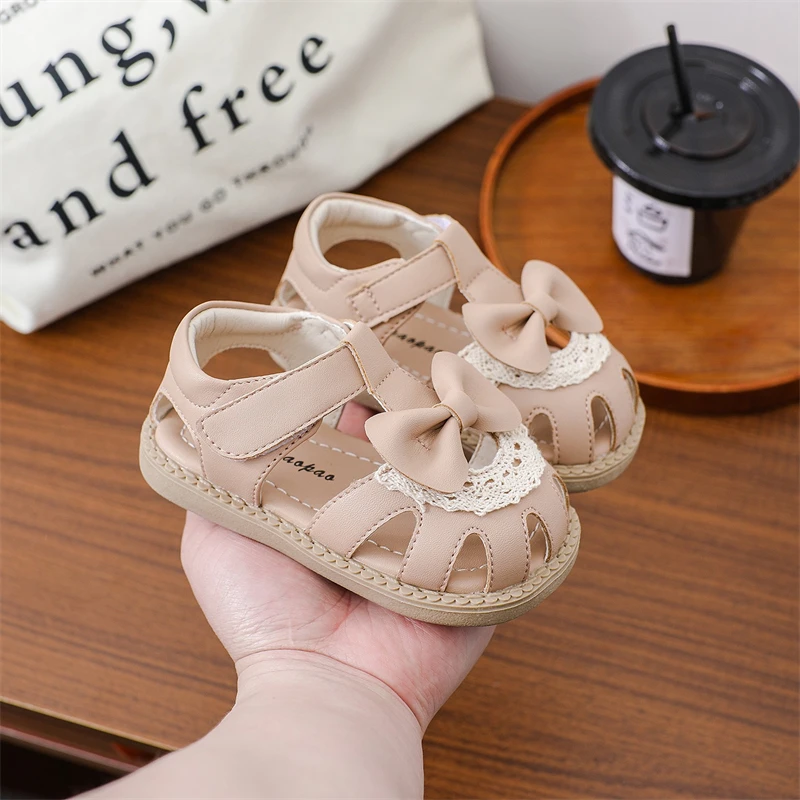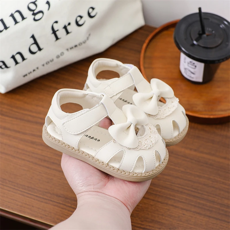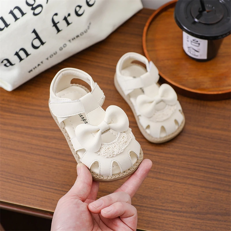 Zapatos informales de verano para niños, sandalias de playa para niñas, sandalias antideslizantes de suela blanda para bebés, zapatos de princesa con lazo de encaje recortados