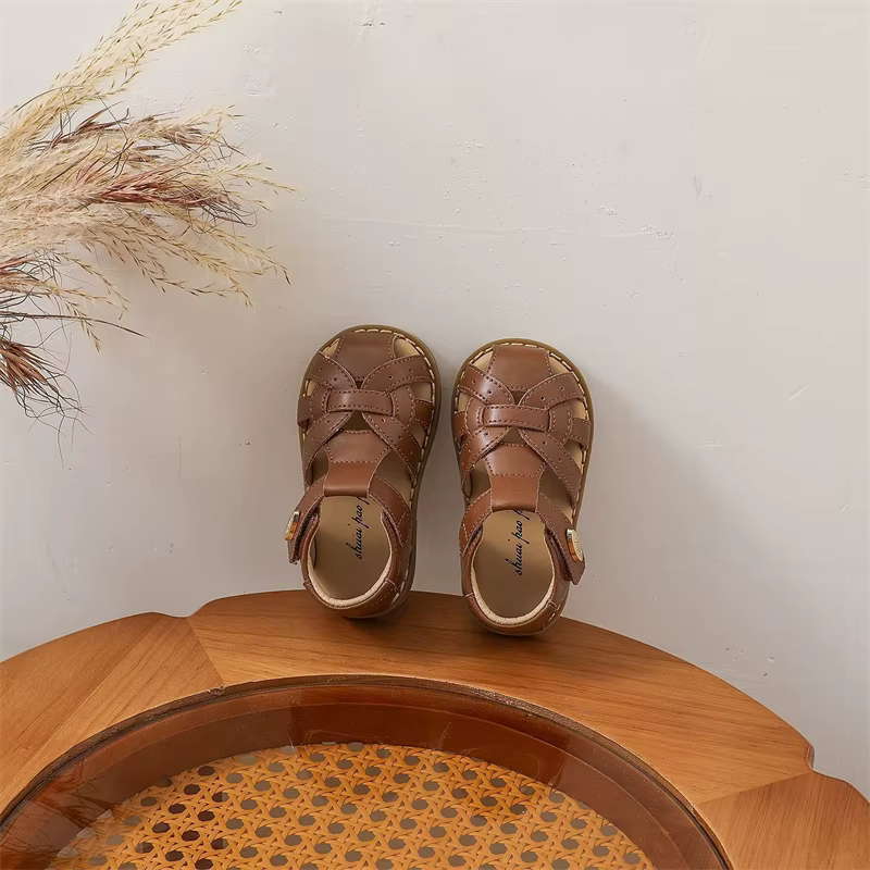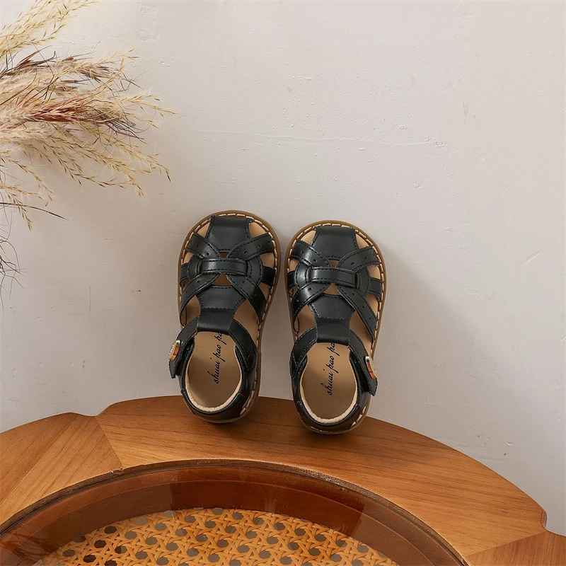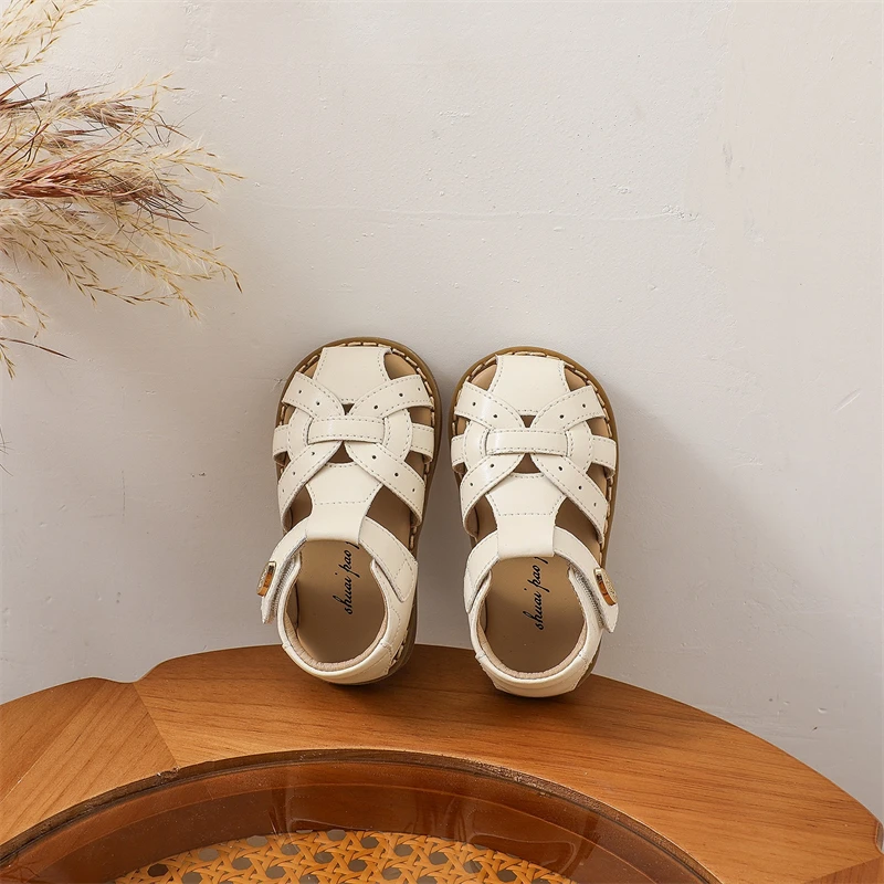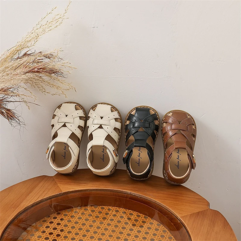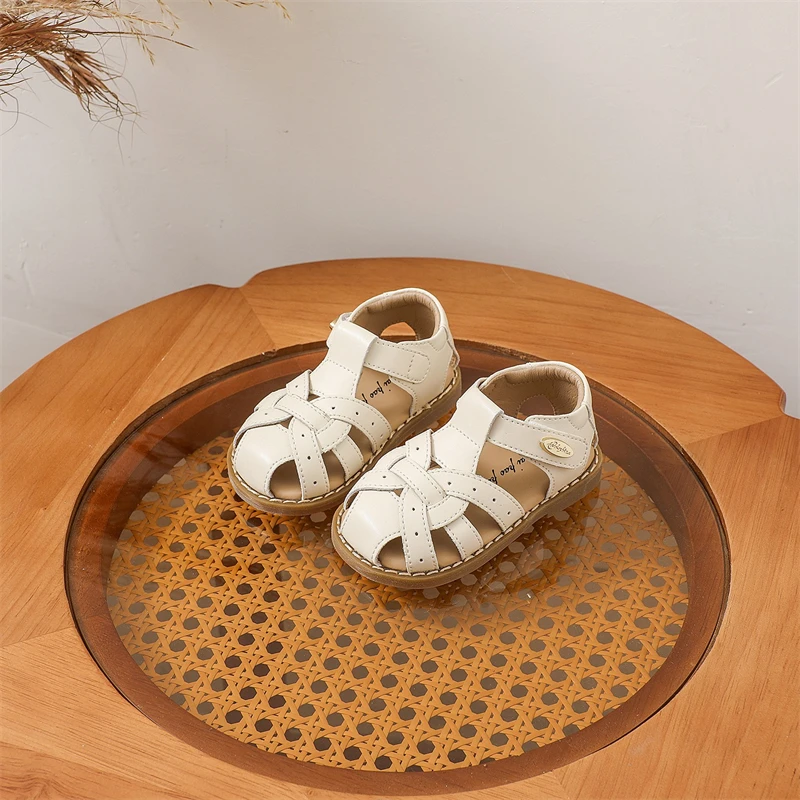 Zapatos informales de verano para niños, sandalias tejidas para niñas, sandalias antideslizantes de suela blanda para bebés, zapatos de playa recortados para niños pequeños