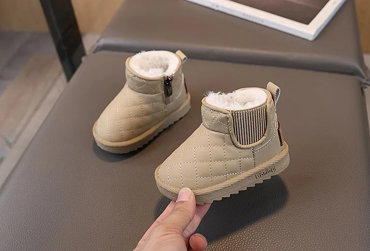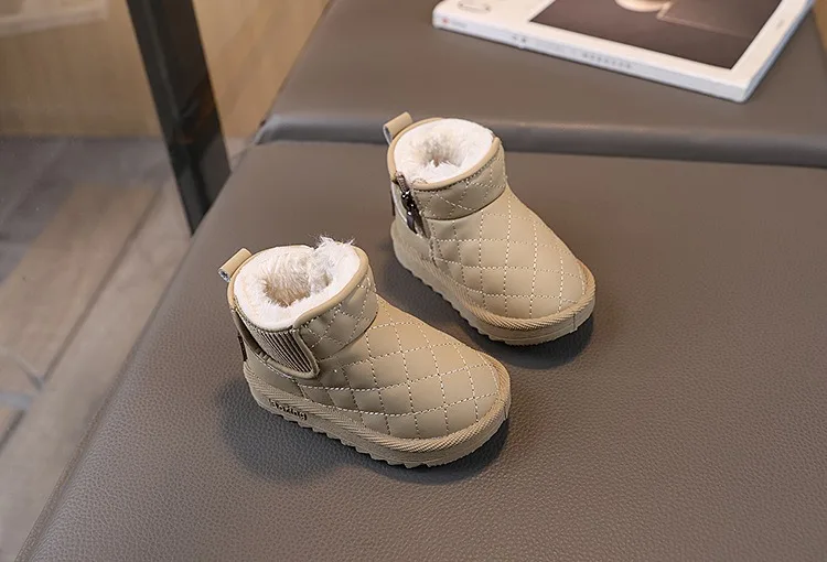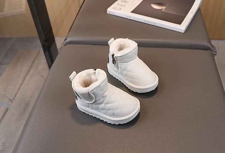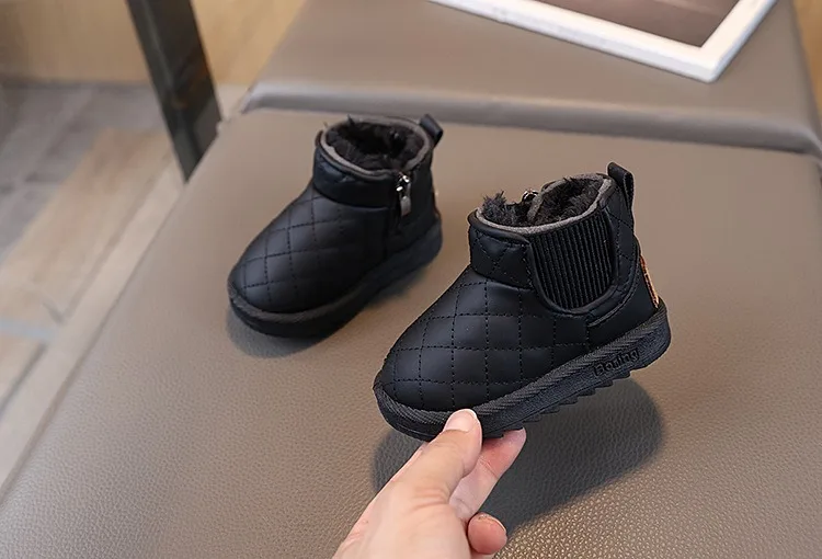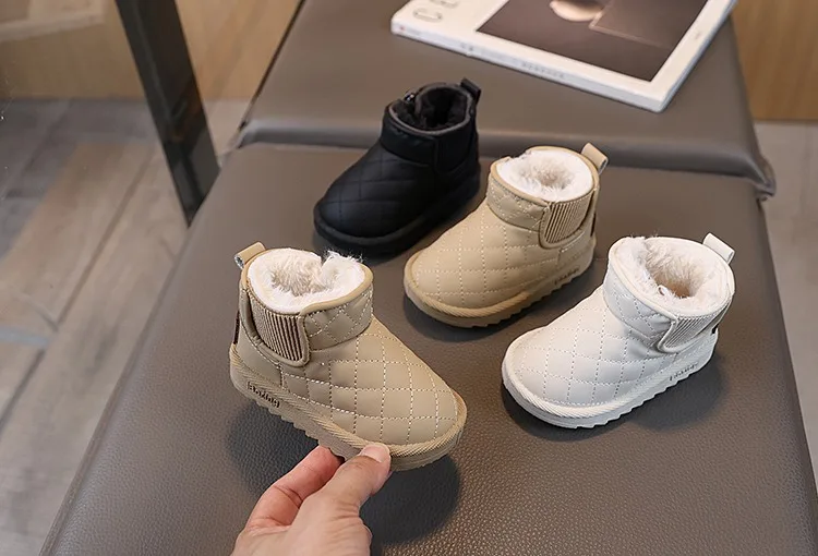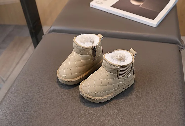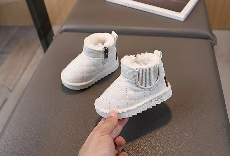 Zapatos de invierno para niños, botas de nieve para bebés y niños, botas de felpa antideslizantes para exteriores, zapatos impermeables a prueba de viento para niños pequeños