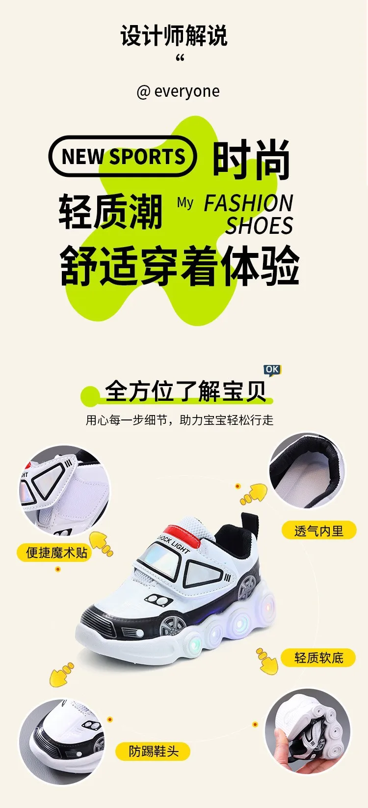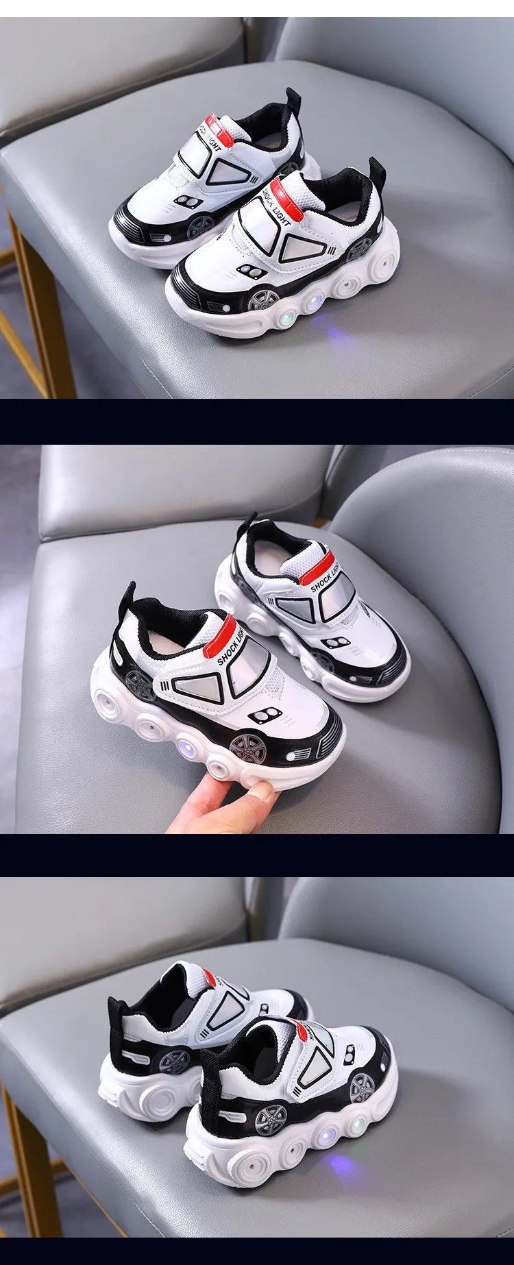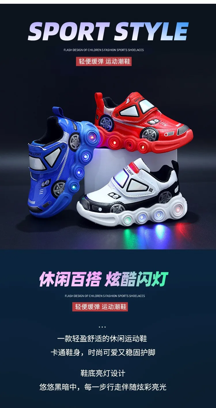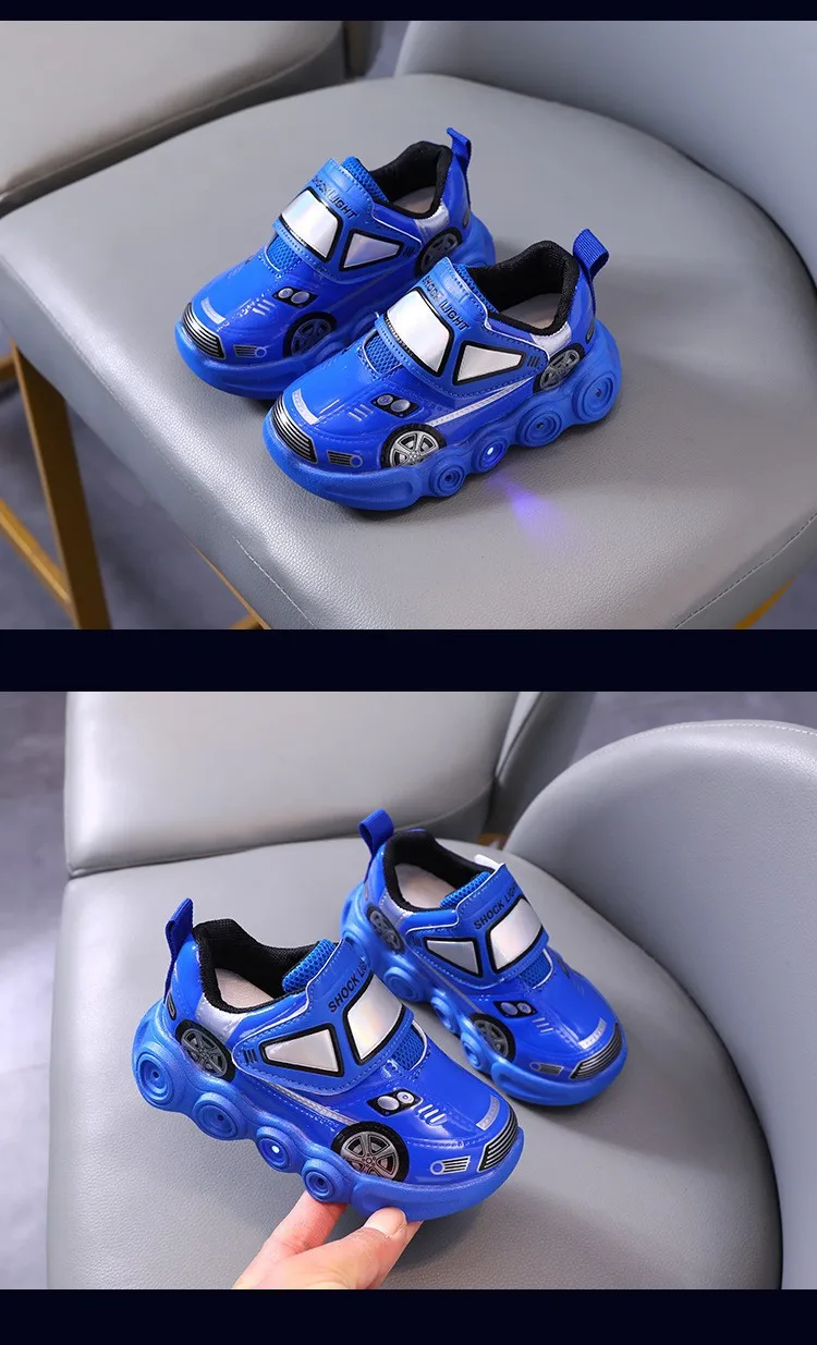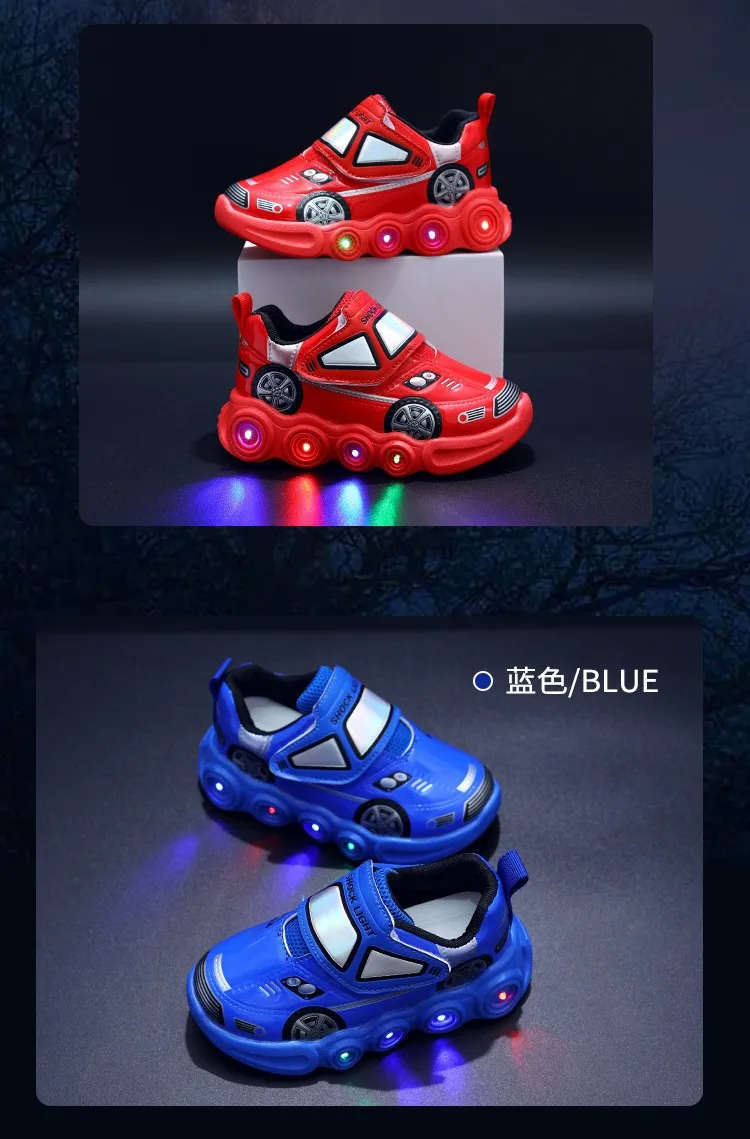 Zapatos Led para niños, zapatillas luminosas de dibujos animados para coche, zapatillas informales antideslizantes y transpirables para niño, zapatos deportivos brillantes a la moda Tenis