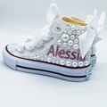Comprar Zapatos de lona con diamantes de imitación para niños, zapatillas planas de cristal, personalizadas con tu nombre, originales, brillantes, inspiradas en Vaca, regalo hecho a mano