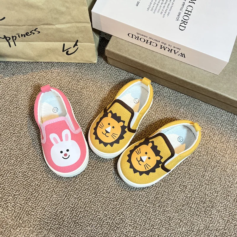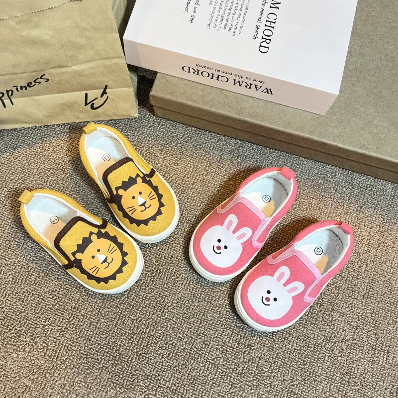 Zapatos de lona con dibujos de animales para niños pequeños, zapatillas transpirables de suela suave para caminar en interiores, novedad de primavera, 2024
