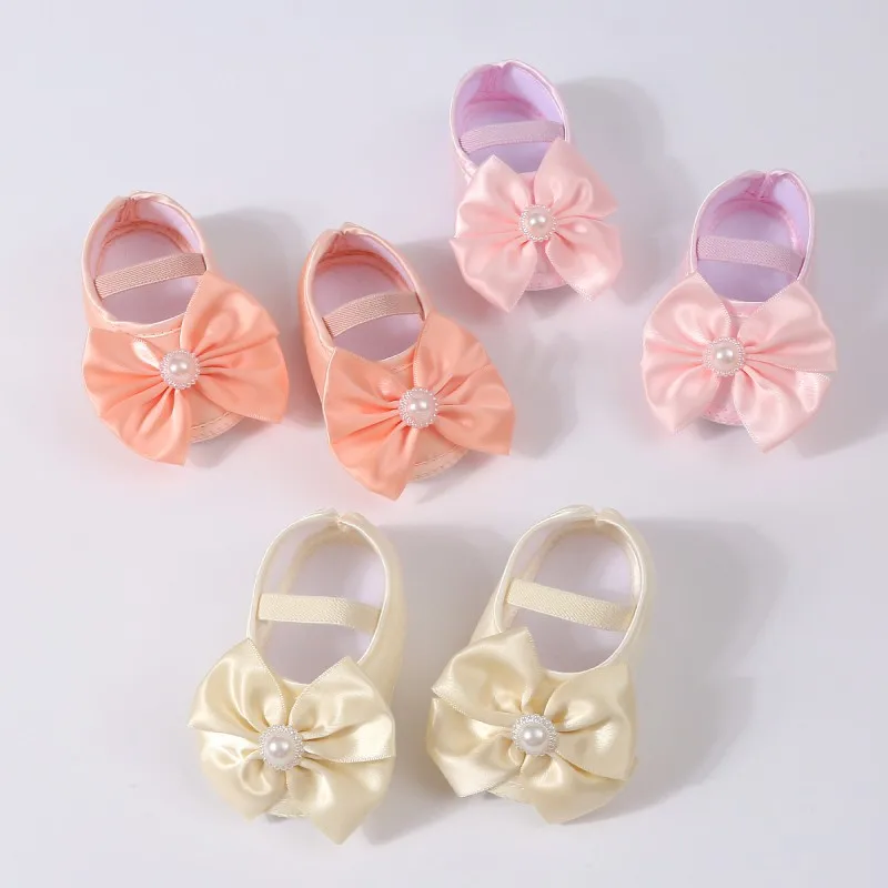 ► Material: tela de algodón y poliéster de alta calidad con decoración de pajarita de perlas dulces, suela suave antideslizante, agradable y cómoda para los pies pequeños.