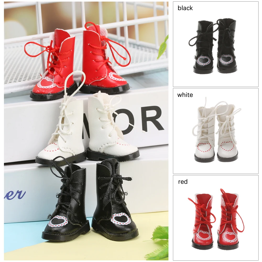 Zapatos de muñeca hechos a mano, zapatos de bandas de corazón, Mini botas de cuero PU para 1/6, accesorios de juguetes para muñecas, regalos de cumpleaños