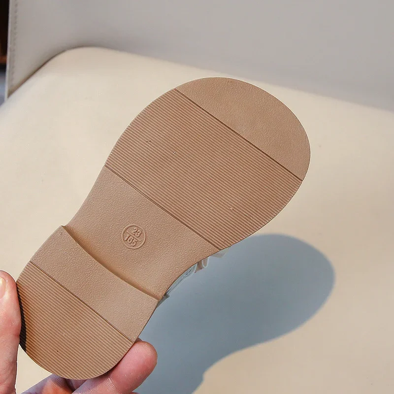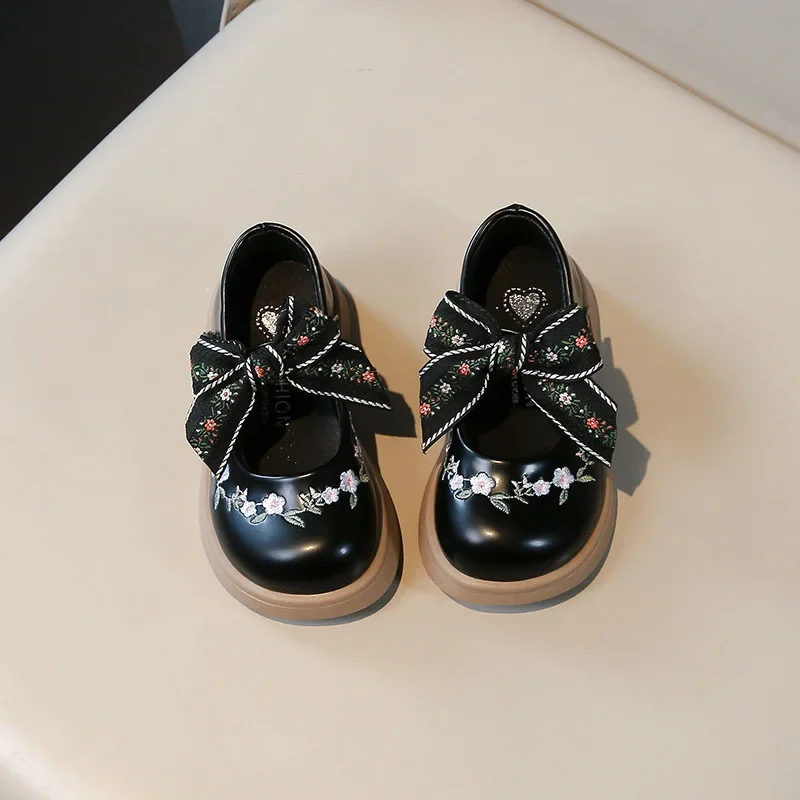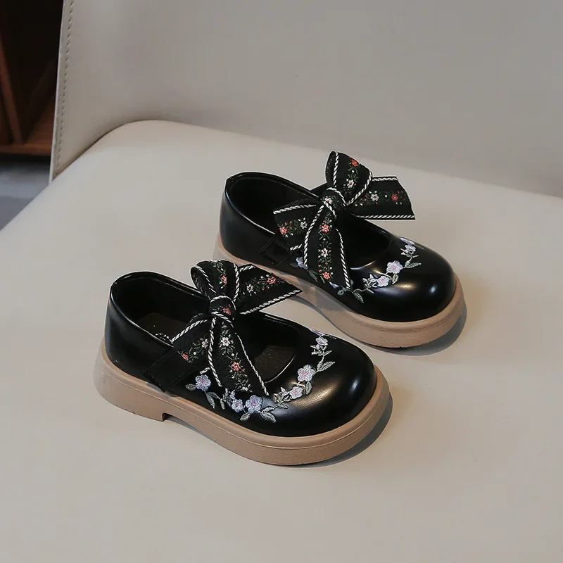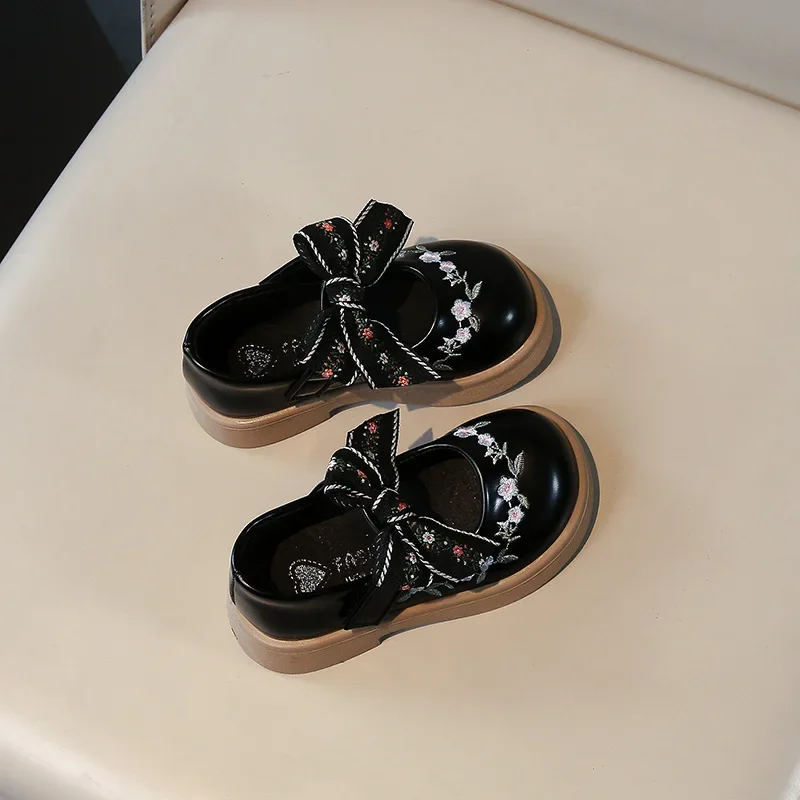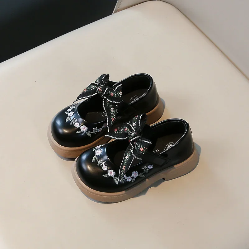 Zapatos pequeños de cuero para niñas, talla 23-35, zapatos individuales con bordado Beige para niñas, zapatos Mary Jane suaves antideslizantes para primavera y otoño