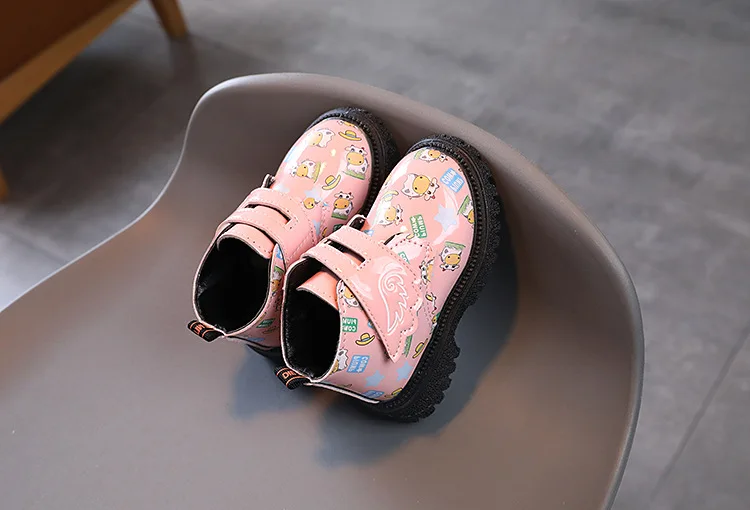 Comprar Zapatos de piel sintética para niñas, Botines impermeables y antideslizantes, botas cortas bonitas para niños pequeños, Otoño e Invierno