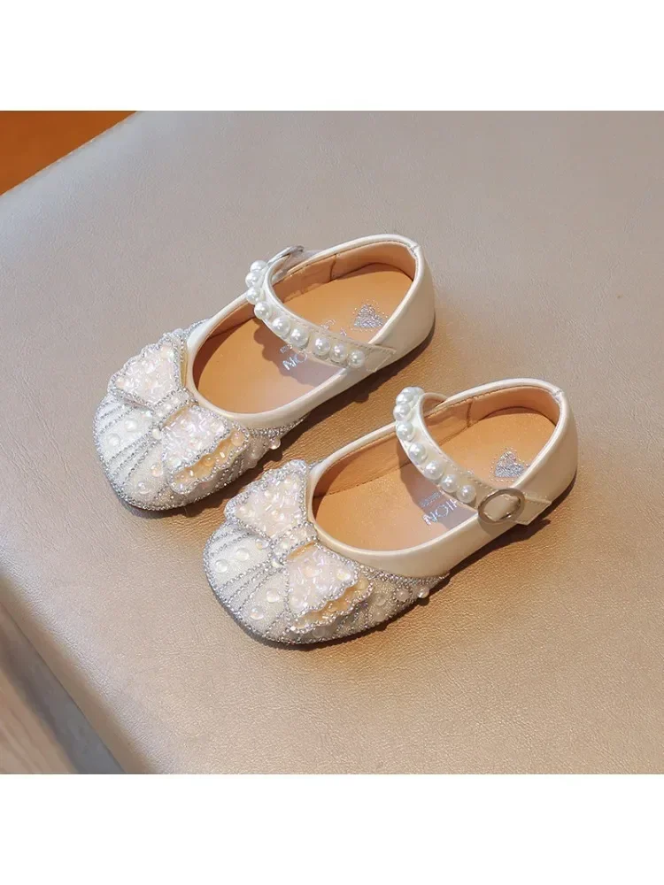 Comprar Zapatos planos de princesa bonitos con lazo plateado de talla 23-34 para chicas adolescentes, zapatos de baile informales de punta baja para estudiantes
