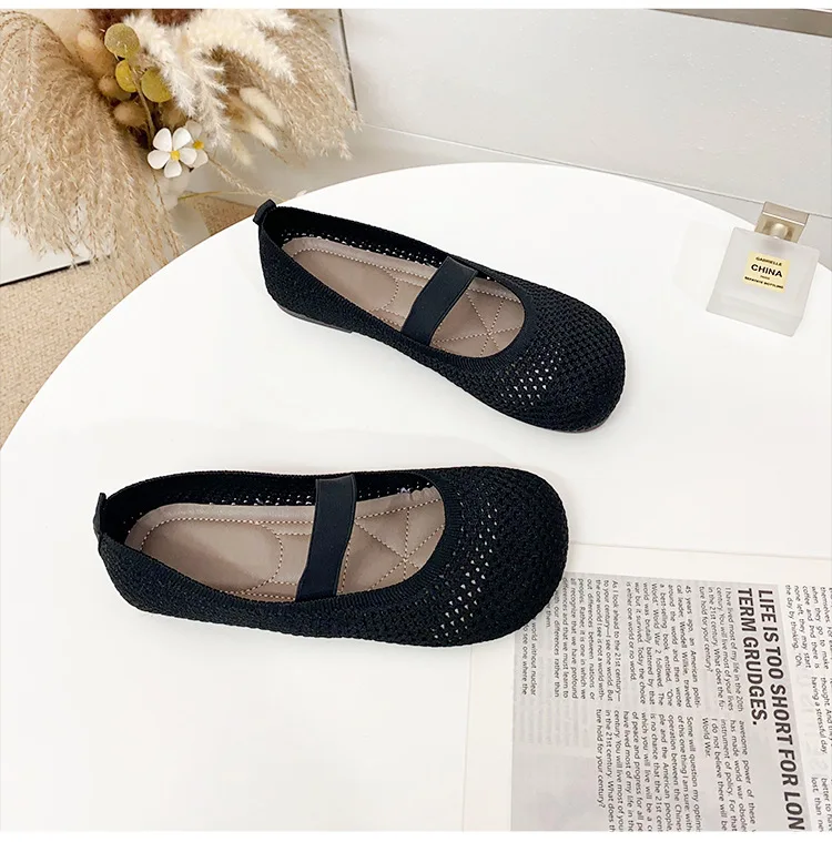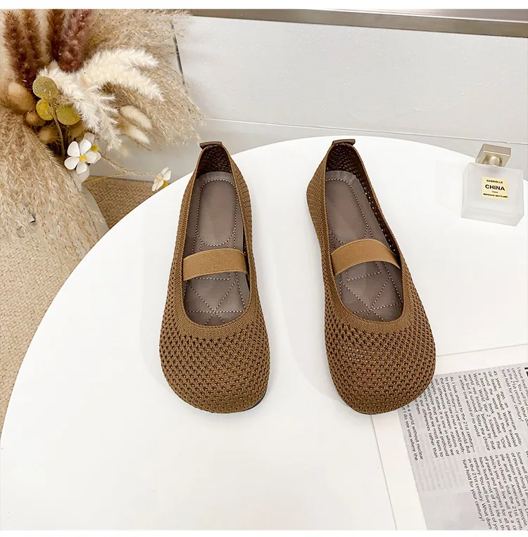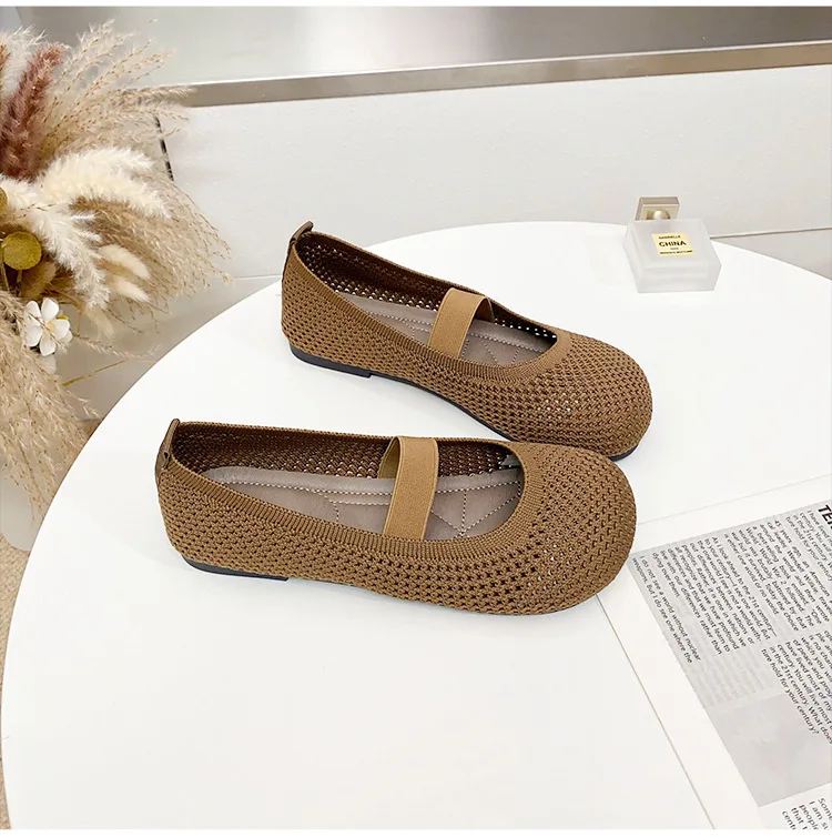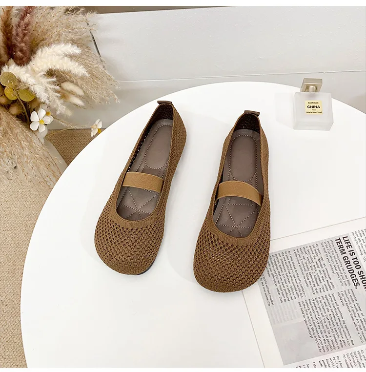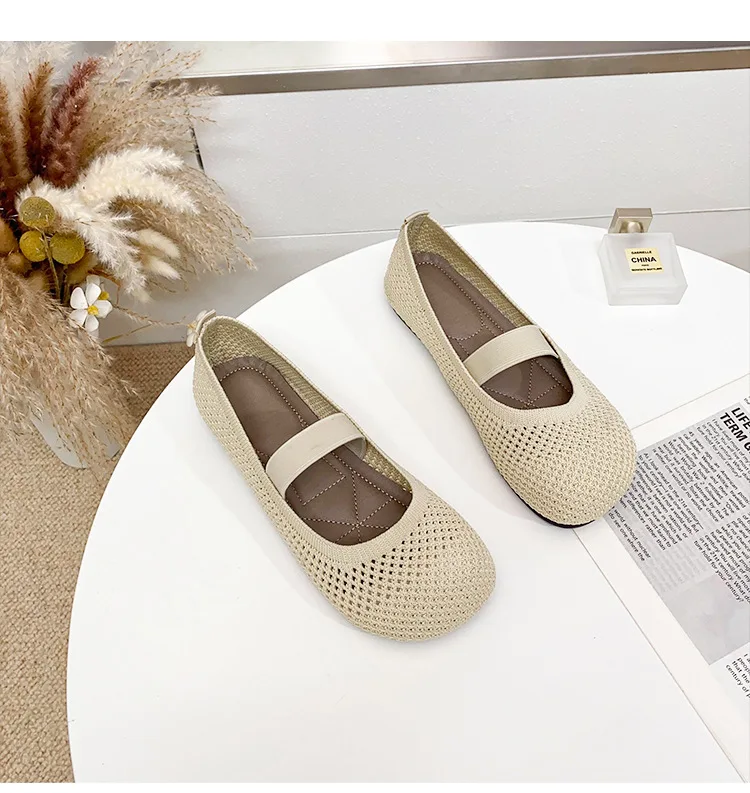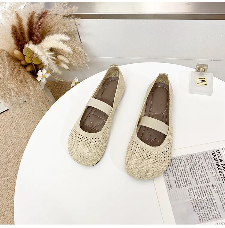 Zapatos planos transpirables para mujer, mocasines de suela blanda de malla de Color sólido para caminar a diario y conducir, calzado sin cordones para primavera y verano