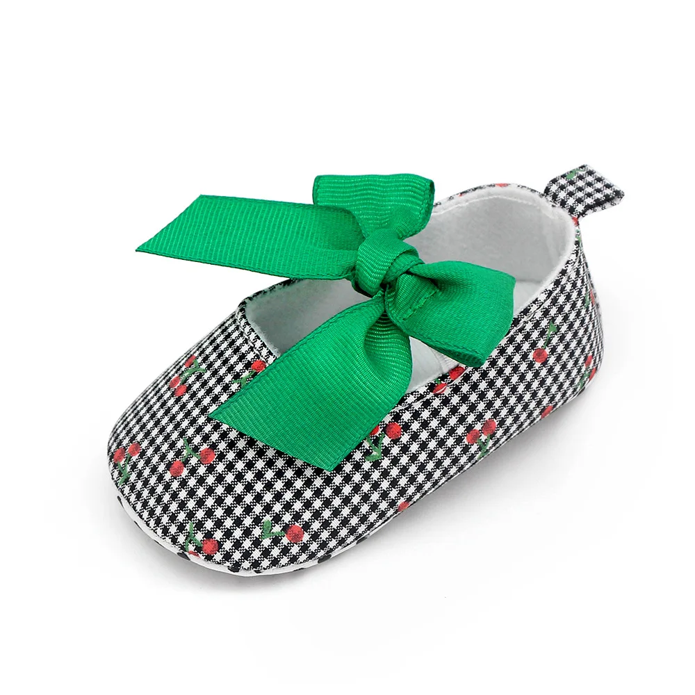 Comprar Zapatos de princesa para bebé de 0 a 18M, antideslizantes, planos, de suela suave, cuna de goma de algodón, con nudo de mariposa, para primeros pasos