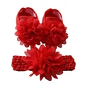 Comprar Zapatos de princesa con decoración de flores grandes para bebés, primeros pasos con diademas, Fondo de algodón, zapatos antideslizantes para niños pequeños de 0 a 18 meses, primavera y otoño