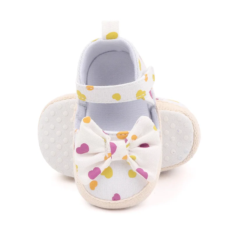 Comprar Zapatos de princesa con lazo para niña, zapatos de lona de algodón con puntos de flores, suela suave, Mary Jane, recién nacido, primeros pasos