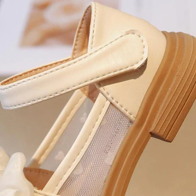 Zapatos de princesa para niña, para fiesta, boda, niños, amor, malla de encaje transpirable con lazo, zapatos de rendimiento, talla 23-35