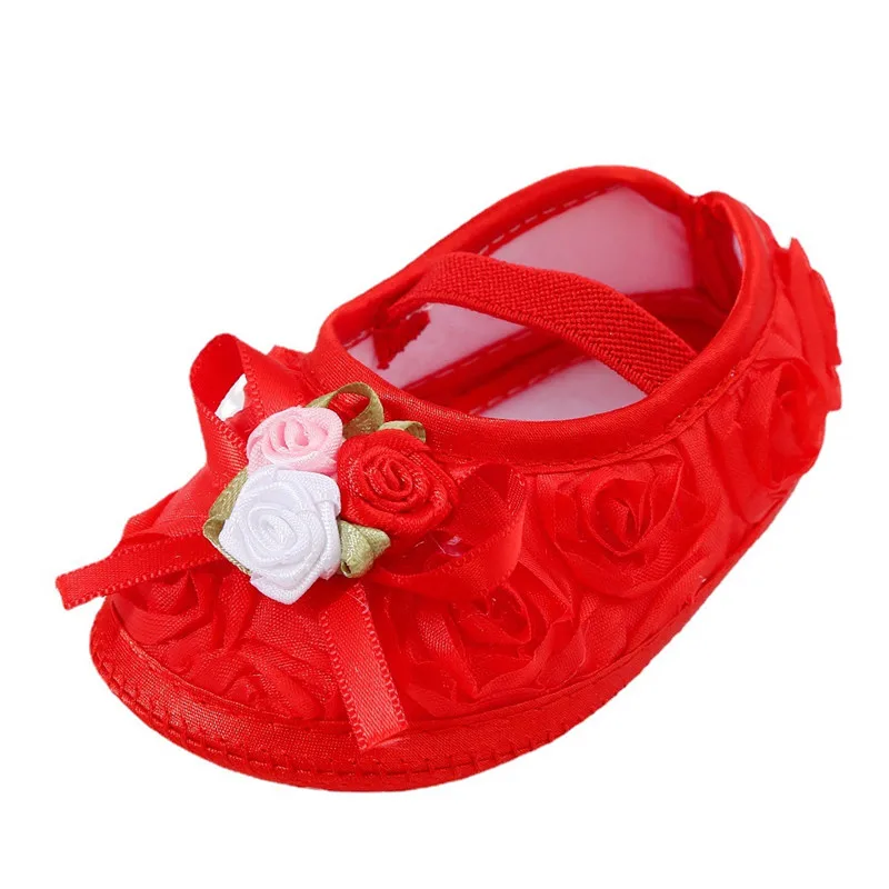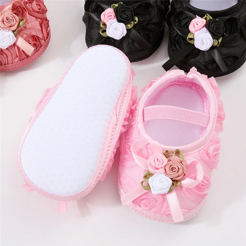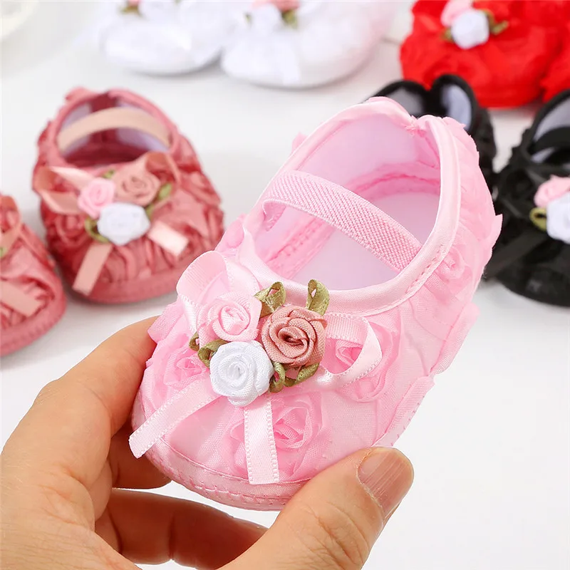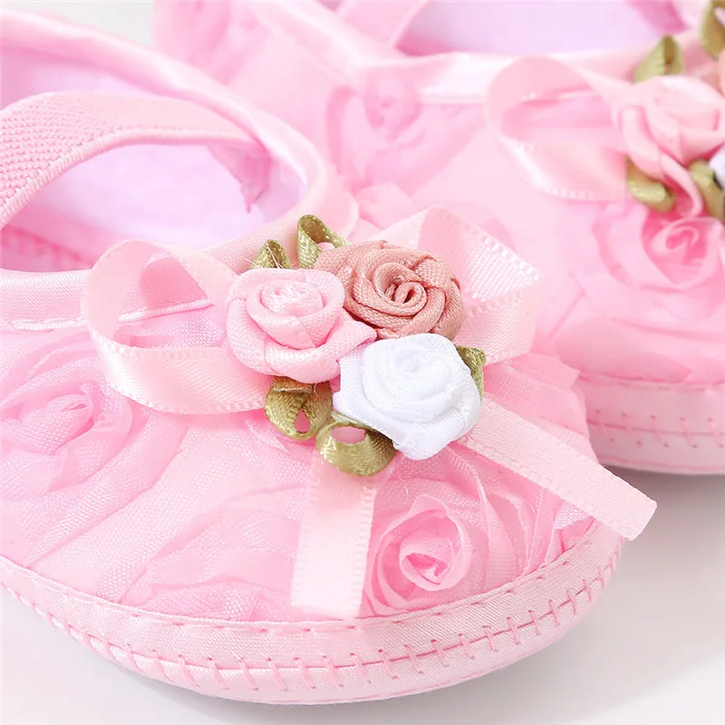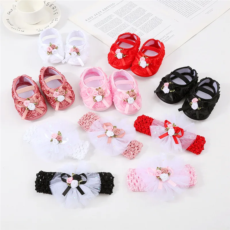 Zapatos de princesa para primeros pasos de interior para bebés y niñas, suela suave, bonitos zapatos de cuna antideslizantes con flores para recién nacidos con diadema