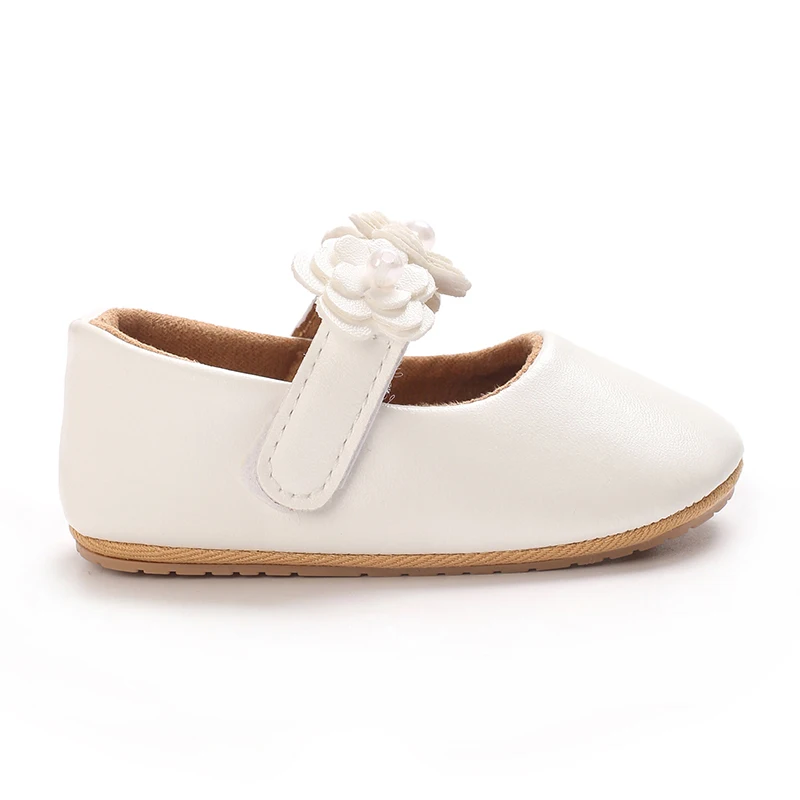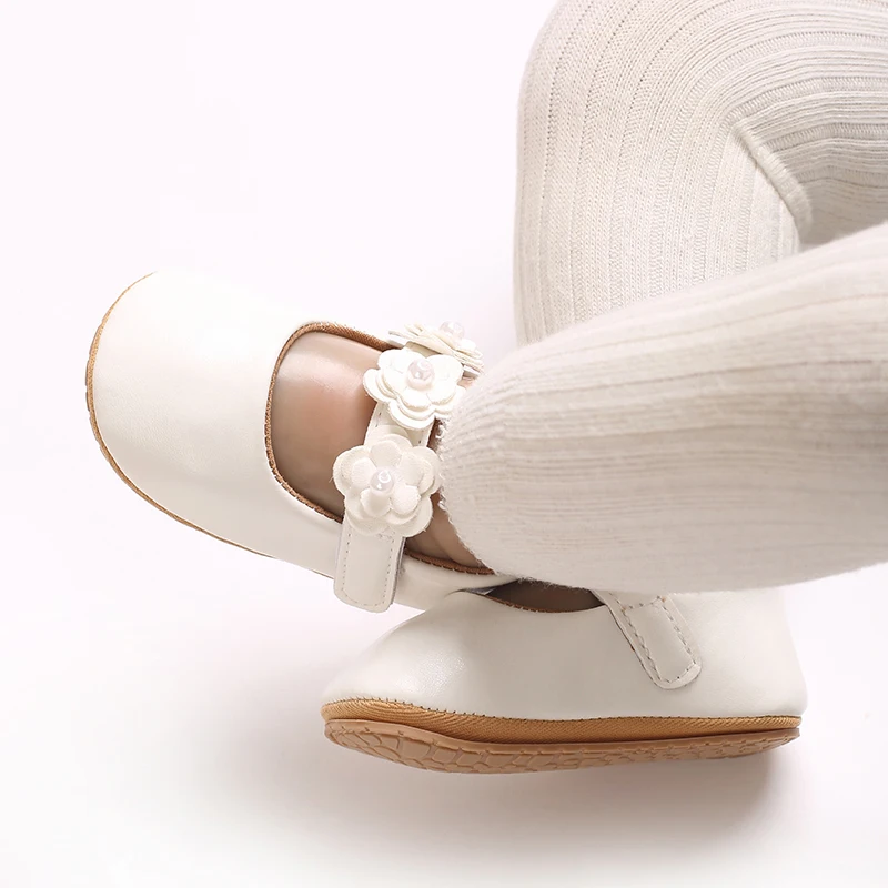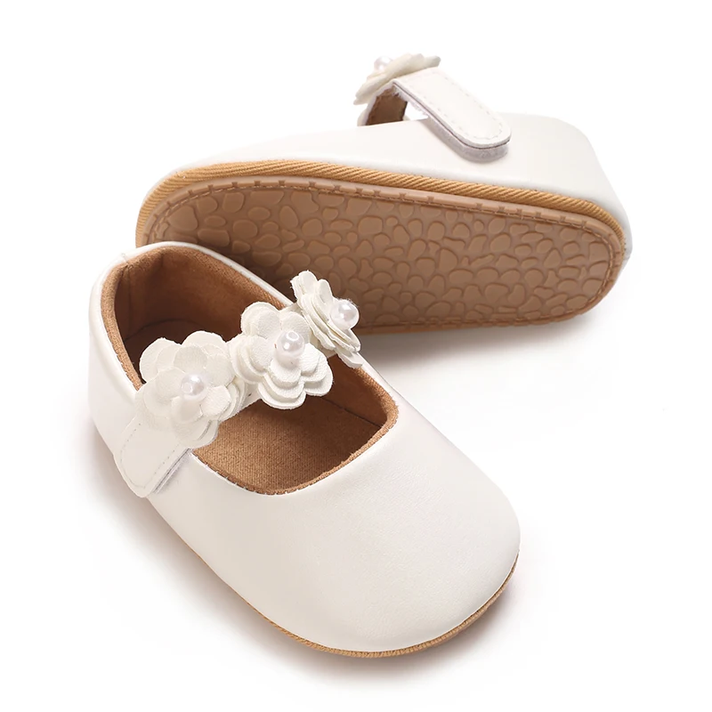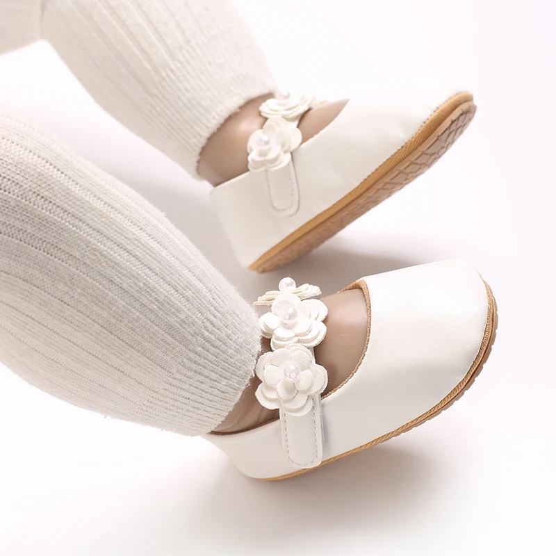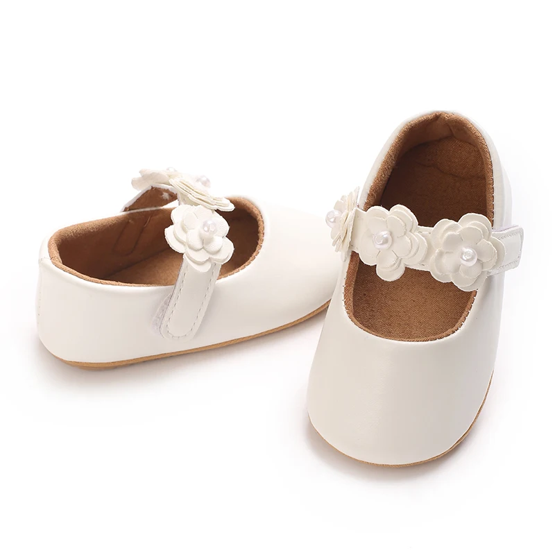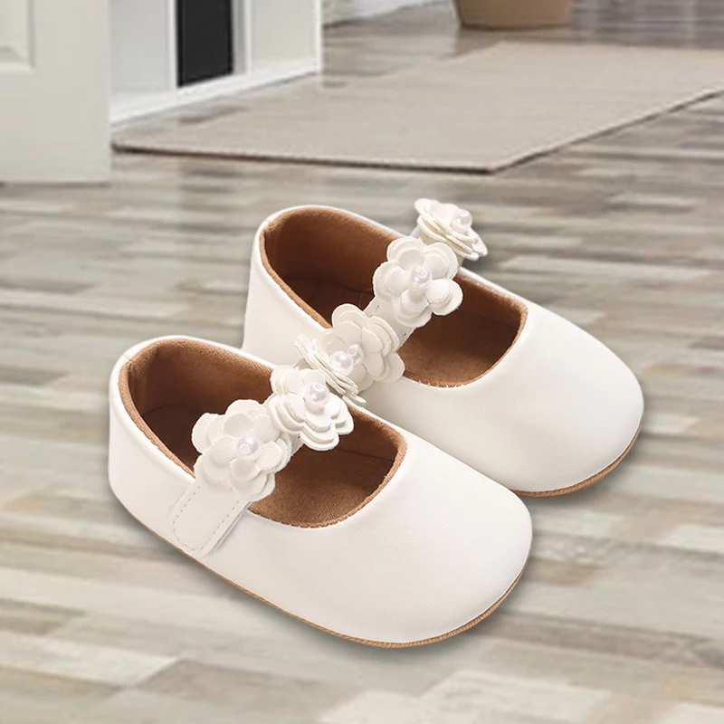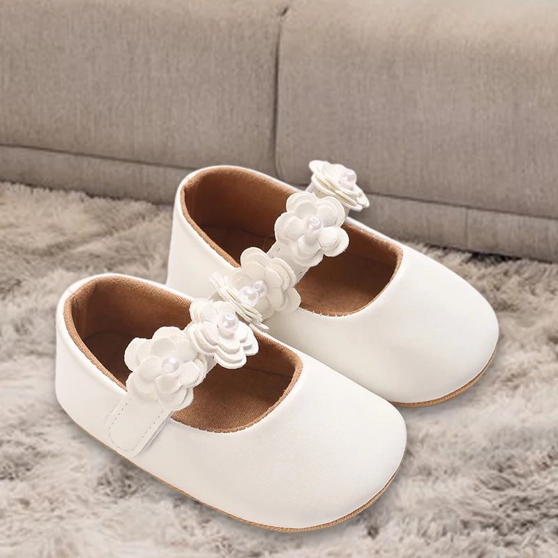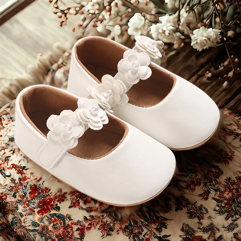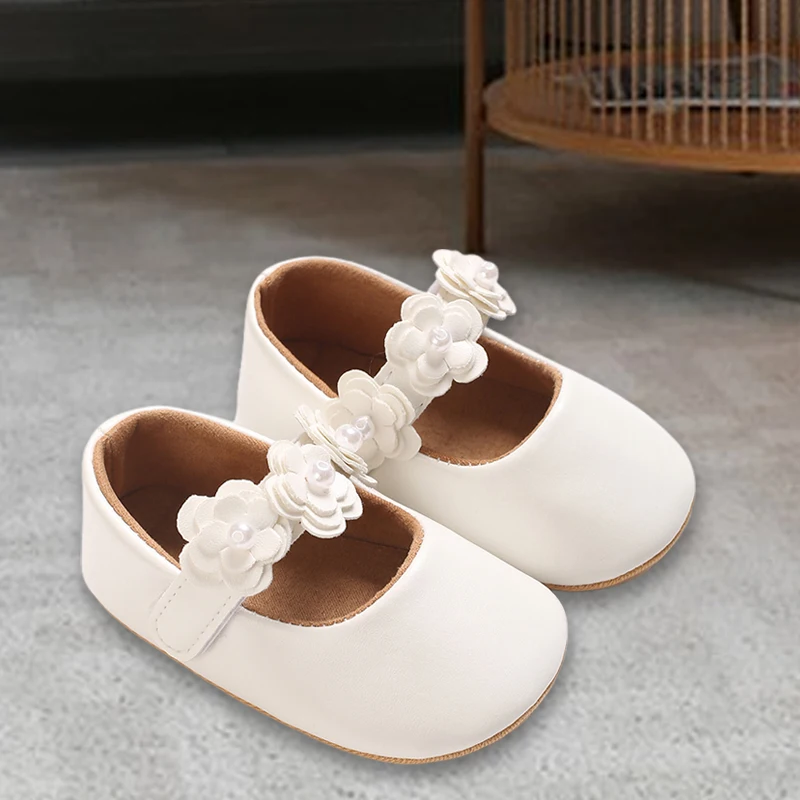 Zapatos de princesa para niñas, zapatos de primeros pasos con parte inferior antideslizante y flores de cuero PU suave, zapatos para niños pequeños