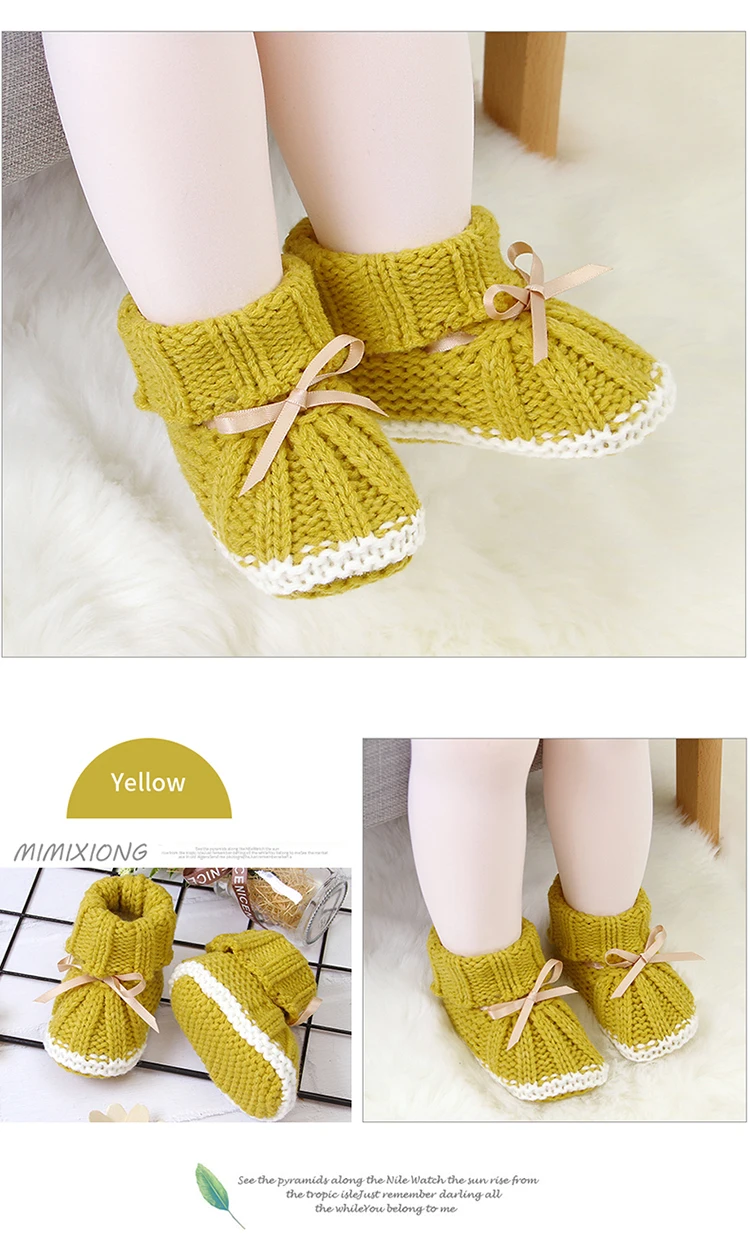 Comprar Zapatos de punto sólido para bebés, botas para recién nacidos, con nudo de mariposa, sin cordones, para otoño de 0 a 24 meses, hechos a mano