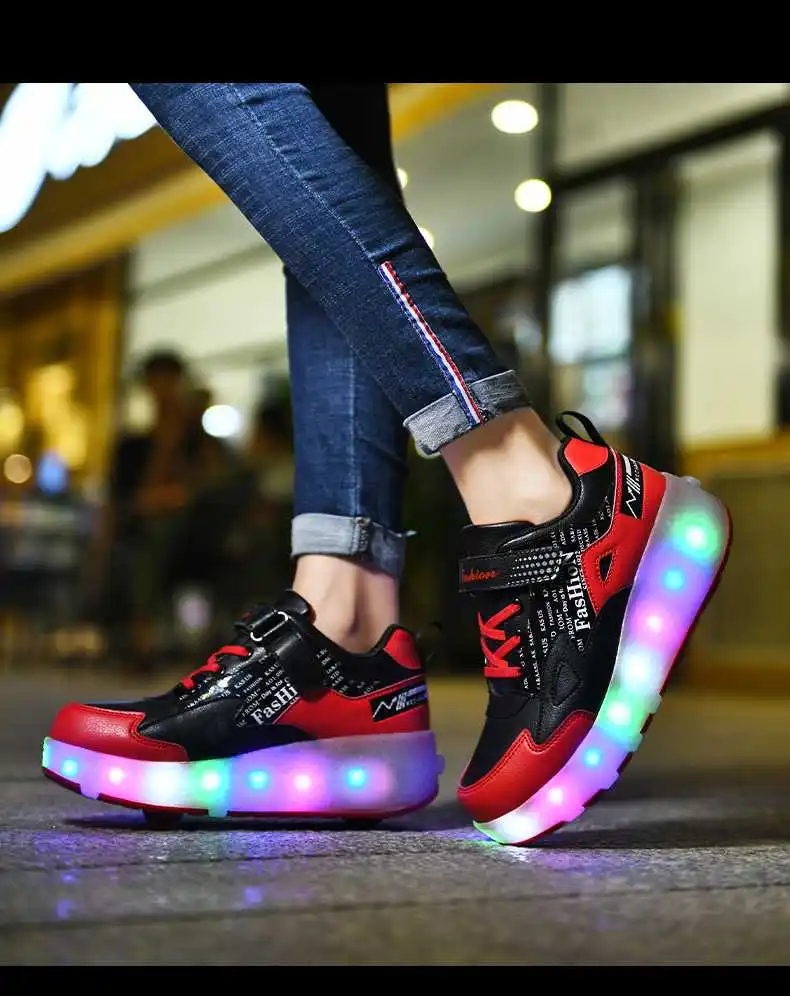 Comprar Zapatos de Skate con luces para niños y niñas, zapatillas luminosas con Usb, Led, botas informales de cuero rosa, 2021