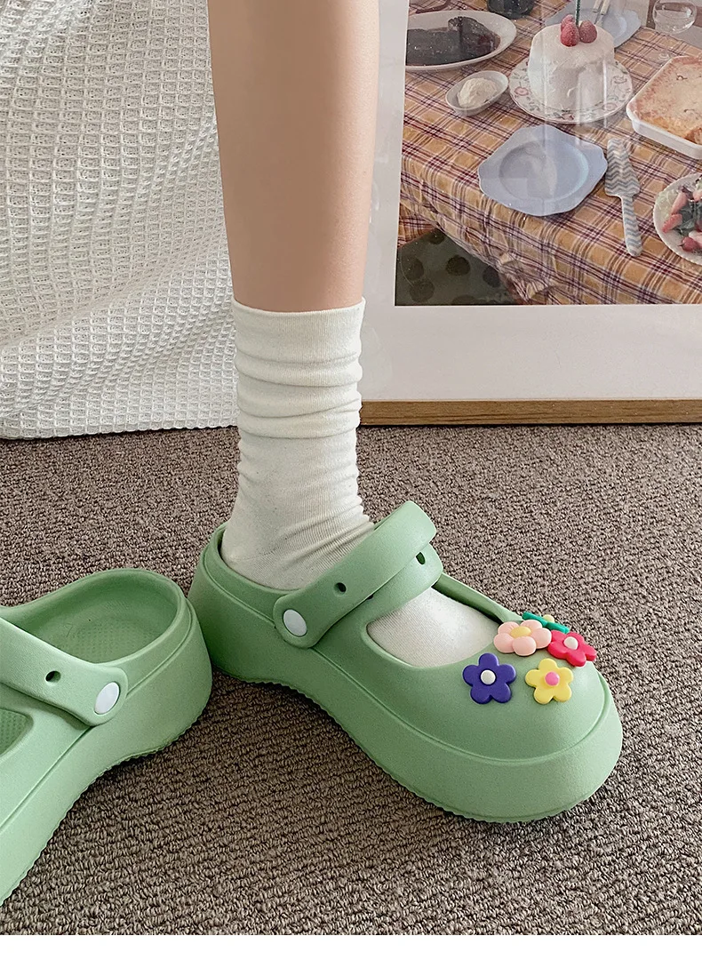Zapatos de suela gruesa con agujeros para mujer, lindos zapatos de flores de dos piezas, prendas de vestir exteriores de verano, lindas zapatillas de suela gruesa para playa, 2023