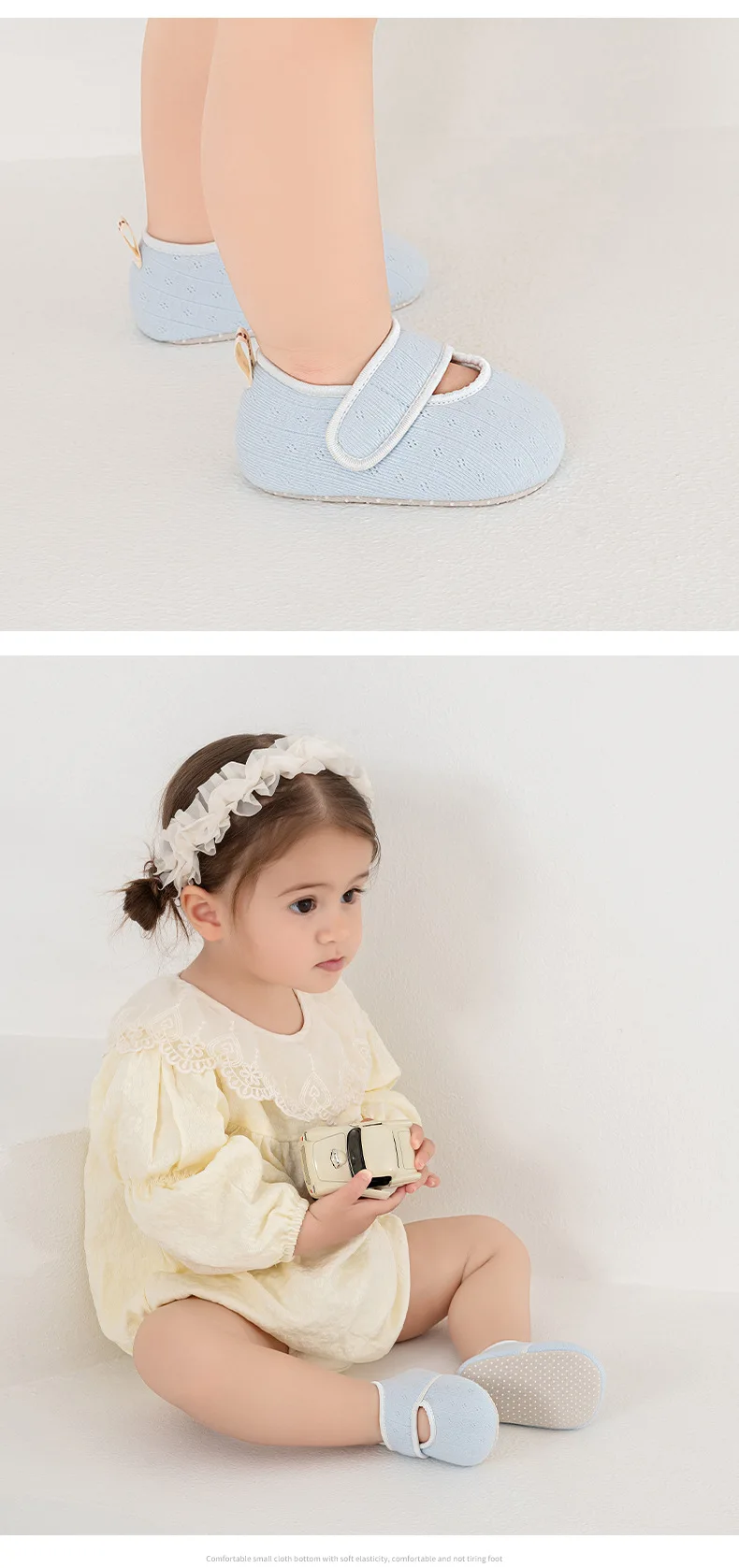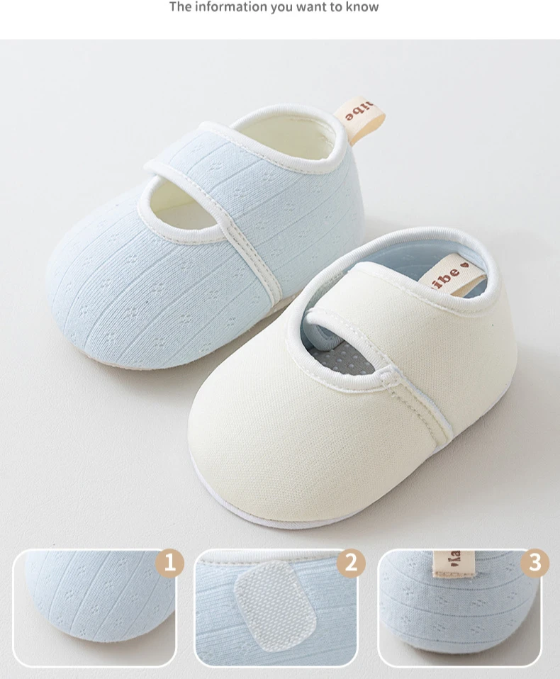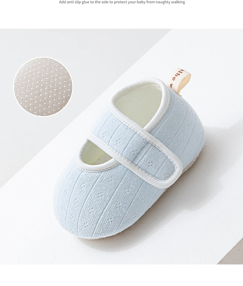 Zapatos de suelo antideslizantes para niños de 0 a 2 años, zapatos para caminar de suela blanda de algodón para bebés, bonitos zapatos de suelo de casa de Color sólido para primavera y verano