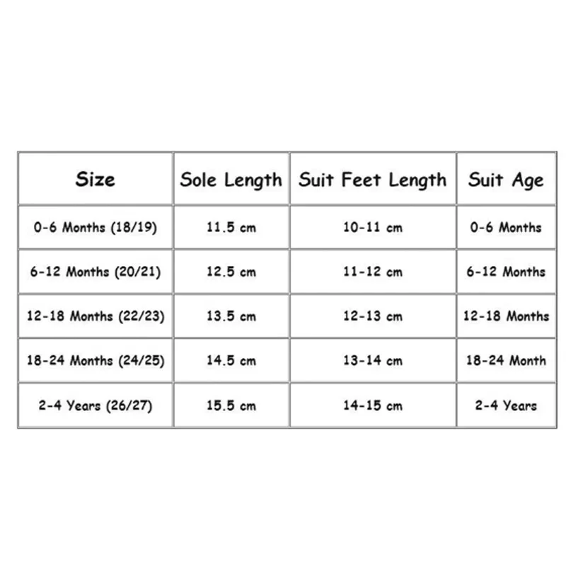 Todas las edades adecuadas se basan en la mayoría de los bebés de la misma edad para su referencia, pero cada bebé se desarrolla de manera diferente y se recomiendan tamaños y edades solo como referencia.Si desea seleccionar con mayor precisión, mida con precisión la longitud neta de los pies de su bebé.