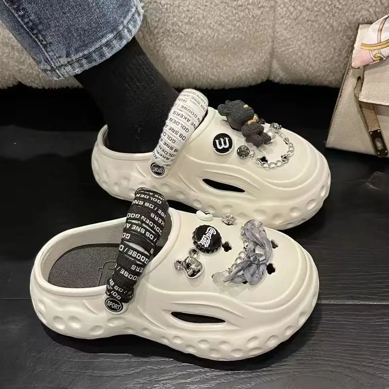 Comprar Zapatos zuecos con dijes para mujer, sandalias de plataforma con lazo bonito, suela gruesa, para exteriores, verano, 2023