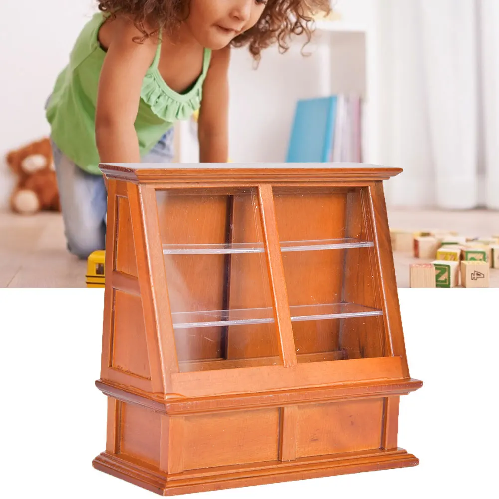 Comprar ZK40 1:12 casa de muñecas en miniatura, gabinete de pastel de madera simulado, Mini muebles modelo con puerta corredera