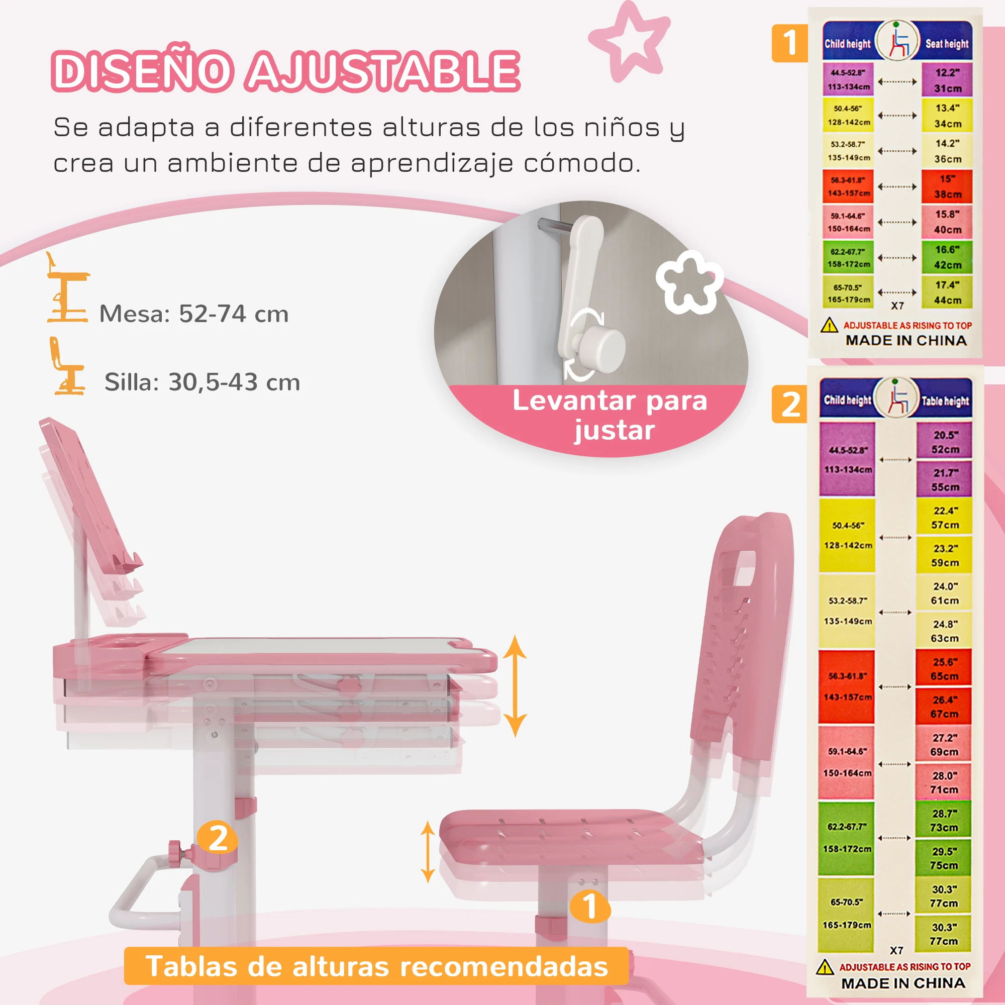 Este conjunto de mesa y silla de estudio de ZONEKIZ es el complemento ideal para el espacio de aprendizaje de tu hijo. Compuesto por 2 piezas, es perfecto para fomentar los hábitos de sentado de los niños y proporcionarles su propio espacio para leer, pintar y jugar. Además, la mesa y la silla son ajustables para adaptarse al crecimiento de los niños, y un tablero inclinable en hasta 45 grados. También incluye accesorios como cajones y un soporte para lápices para una mejor organización.