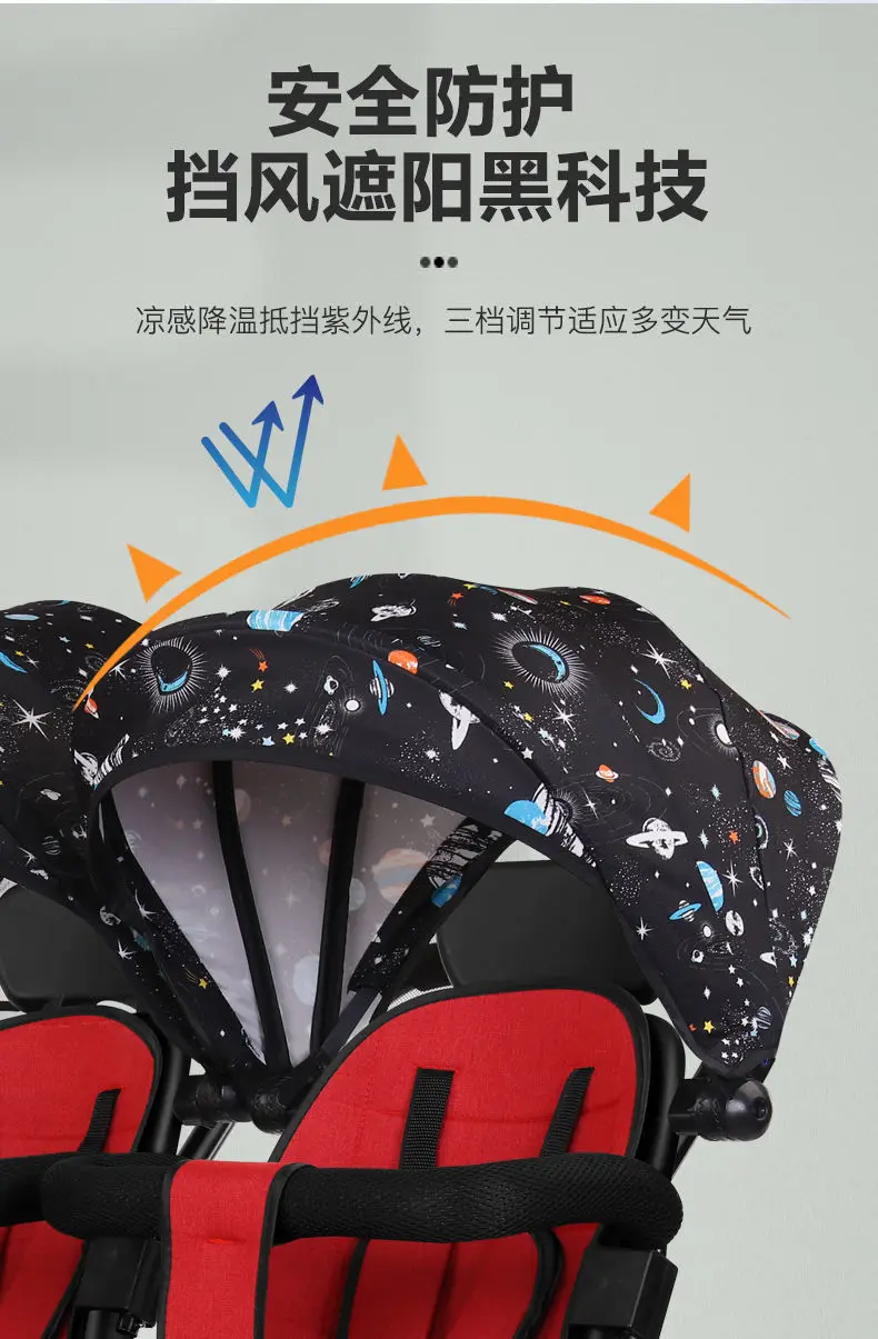 Comprar Zzz-carrito plegable de doble coche para gemelos, carrito de visión alta, ligero y absorbente de golpes, para sentarse y acostarse